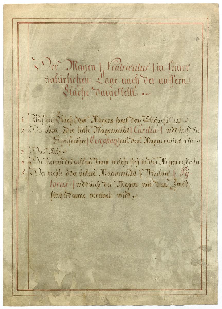 Der Text ist die ergänzende Beschreibung in deutscher Sprache zum anatomischen Wachsmodell des Magens.