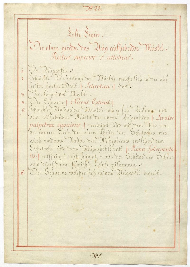 Der Text ist die ergänzende Beschreibung in deutscher Sprache zum anatomischen Wachsmodell der Augenmuskeln.