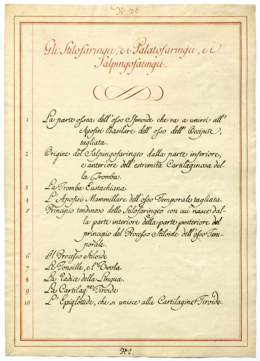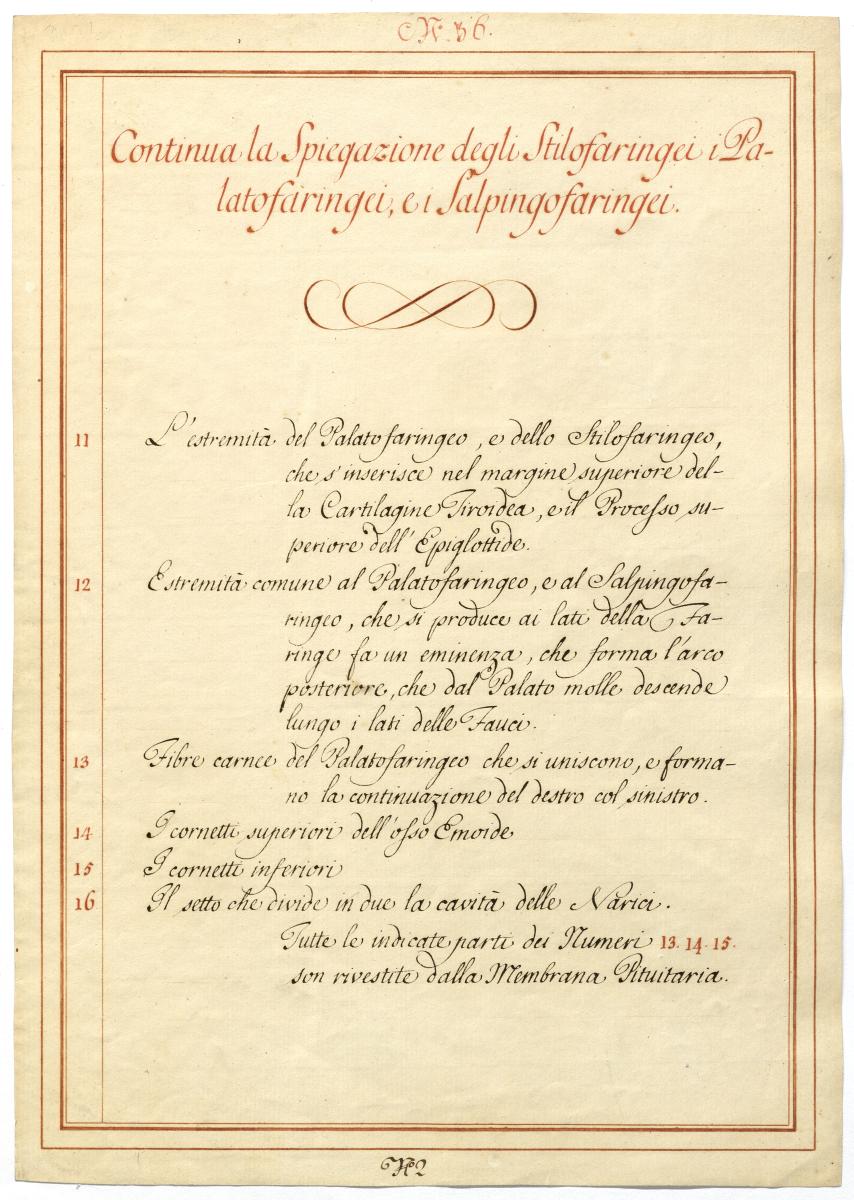 Der Text ist die ergänzende Beschreibung in italienischer Sprache zum anatomischen Wachsmodell des Rachenhebers.
