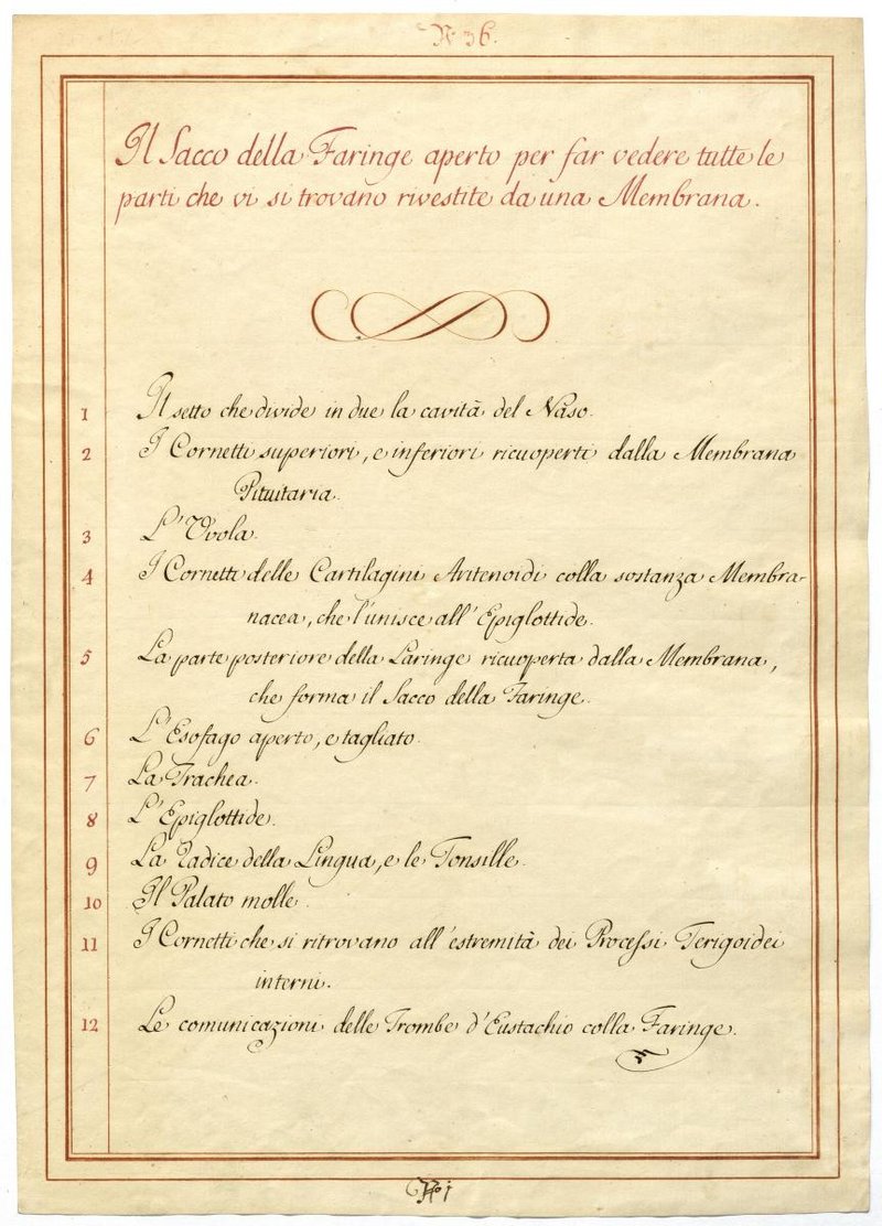 Der Text ist die ergänzende Beschreibung in italienischer Sprache zum anatomischen Wachsmodell des Rachenhebers.