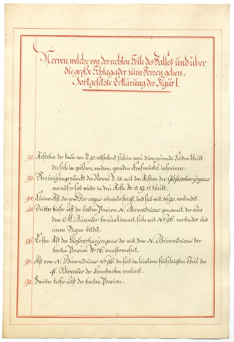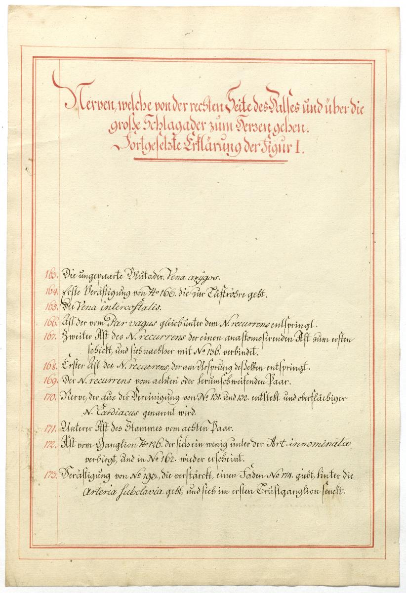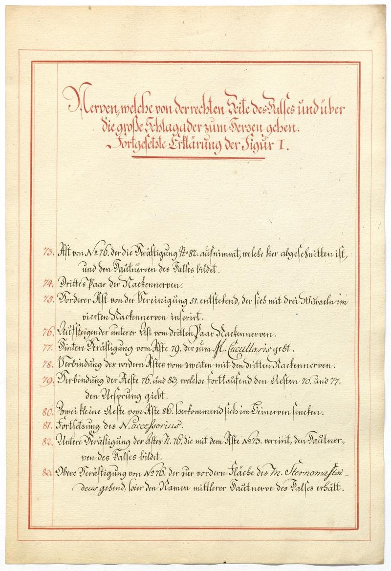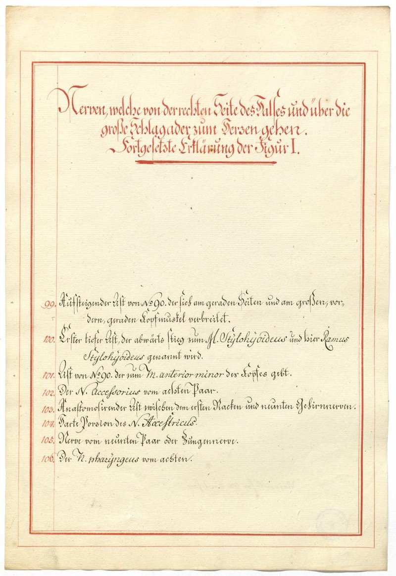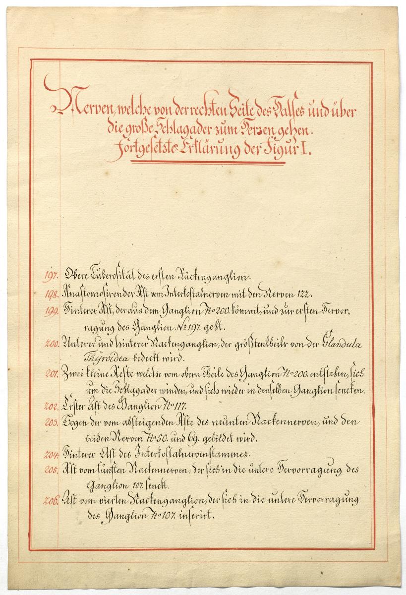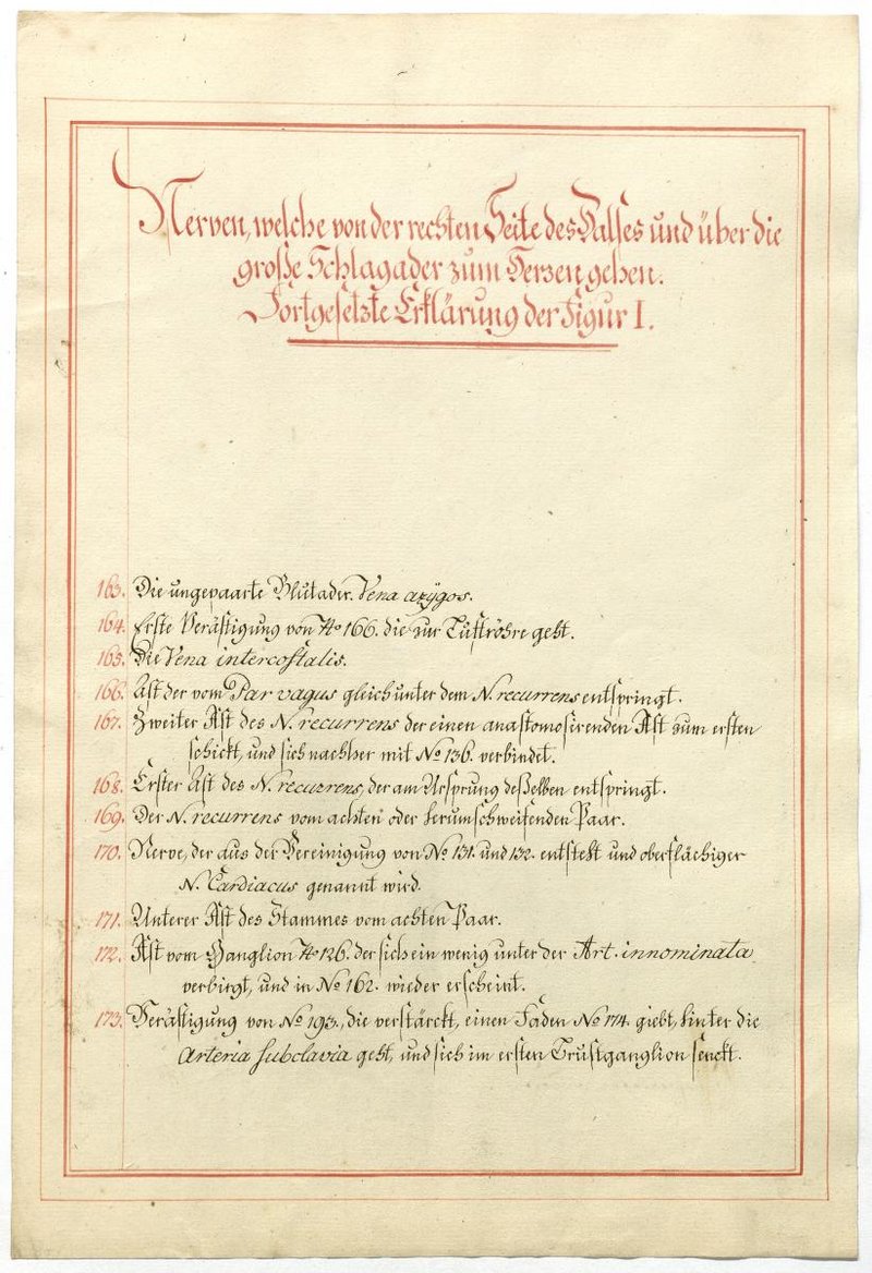 Der Text ist die ergänzende Beschreibung in deutscher Sprache zum anatomischen Wachsmodell des Nervus hypoglossus und Plexus cervicalis. Blatt 18 fehlt.