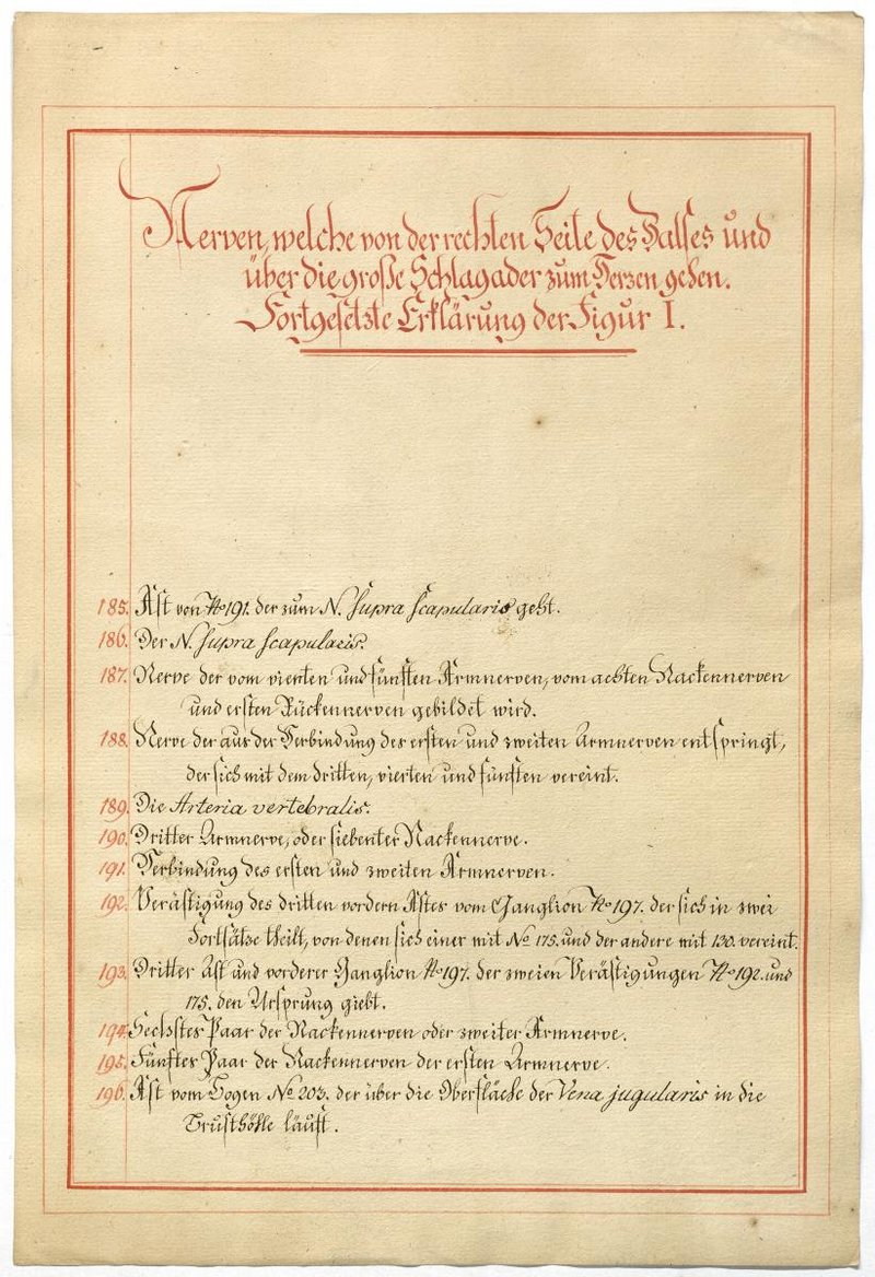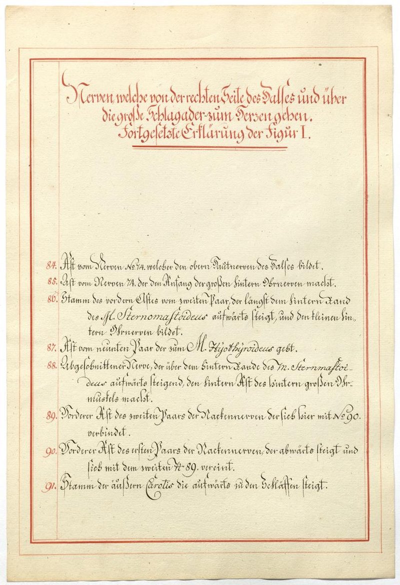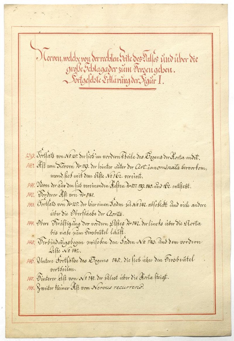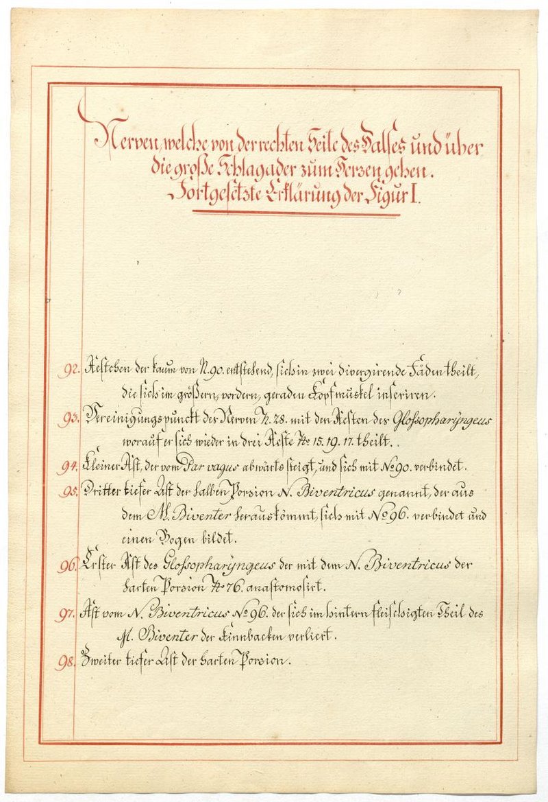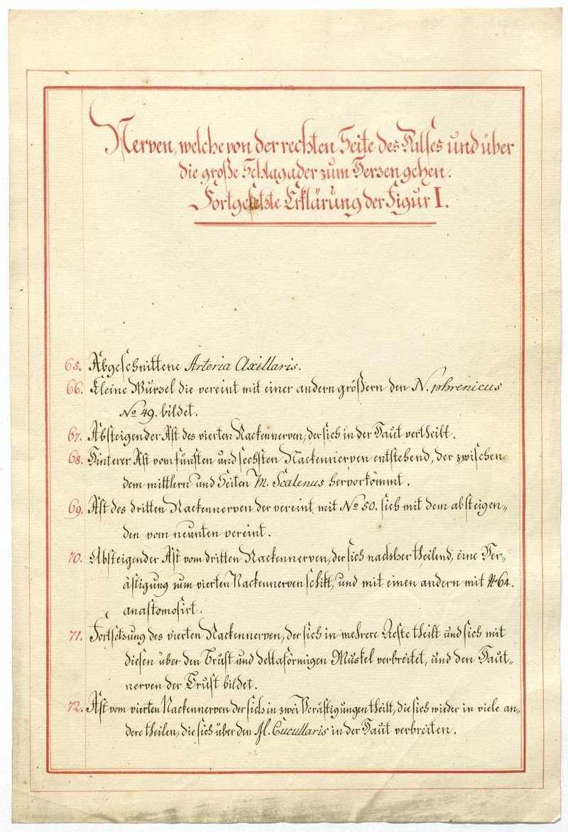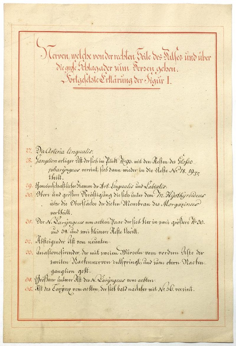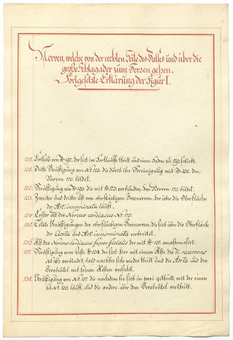 Der Text ist die ergänzende Beschreibung in deutscher Sprache zum anatomischen Wachsmodell des Nervus hypoglossus und Plexus cervicalis. Blatt 18 fehlt.