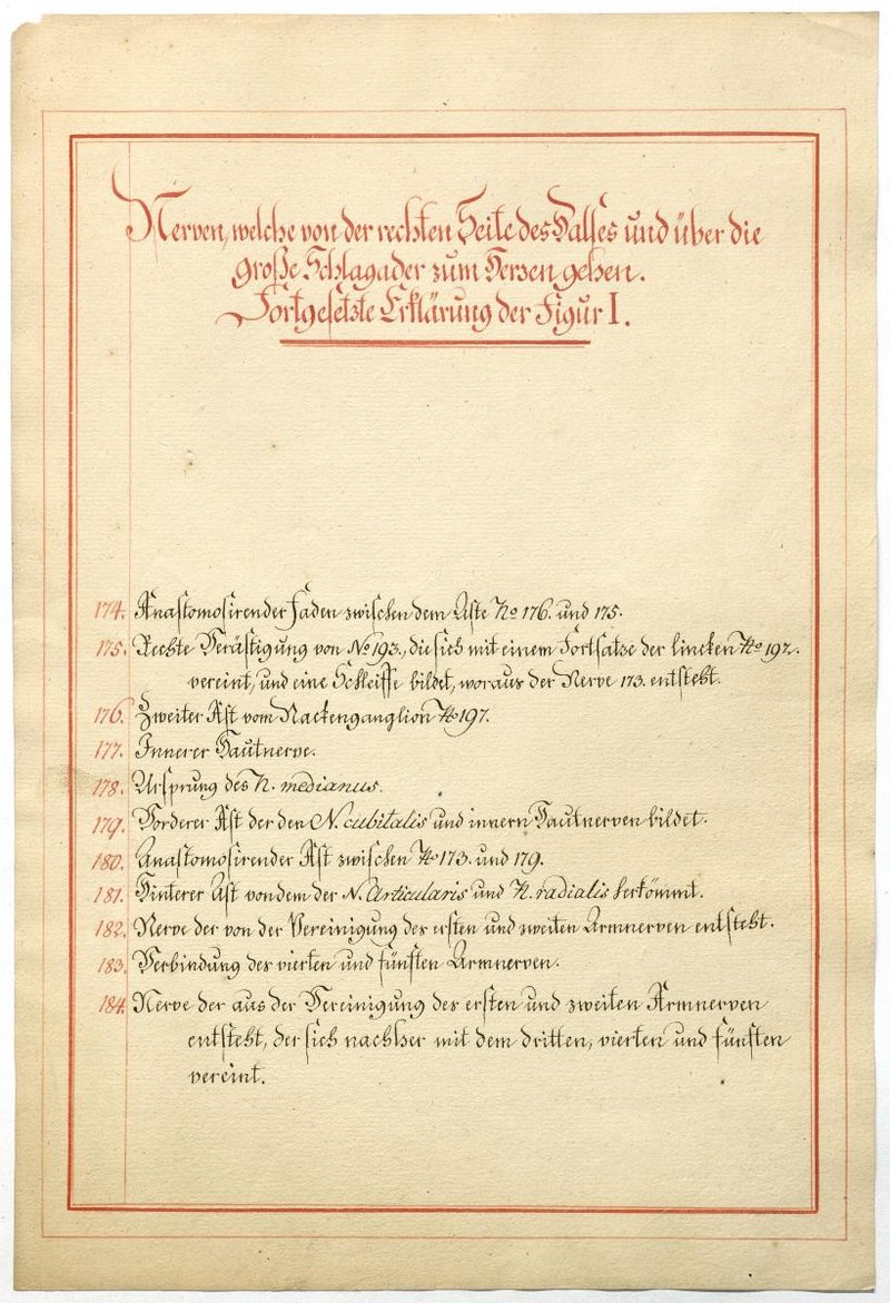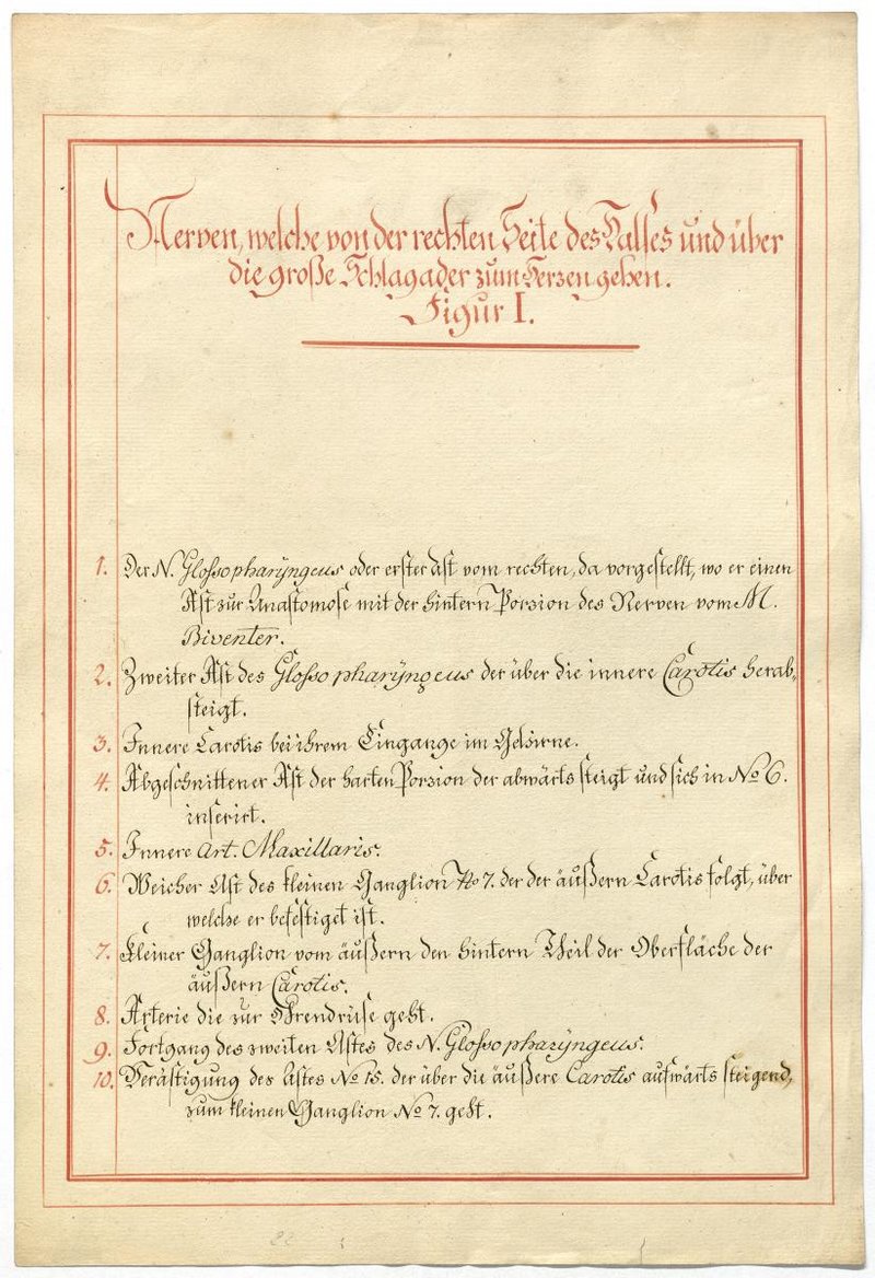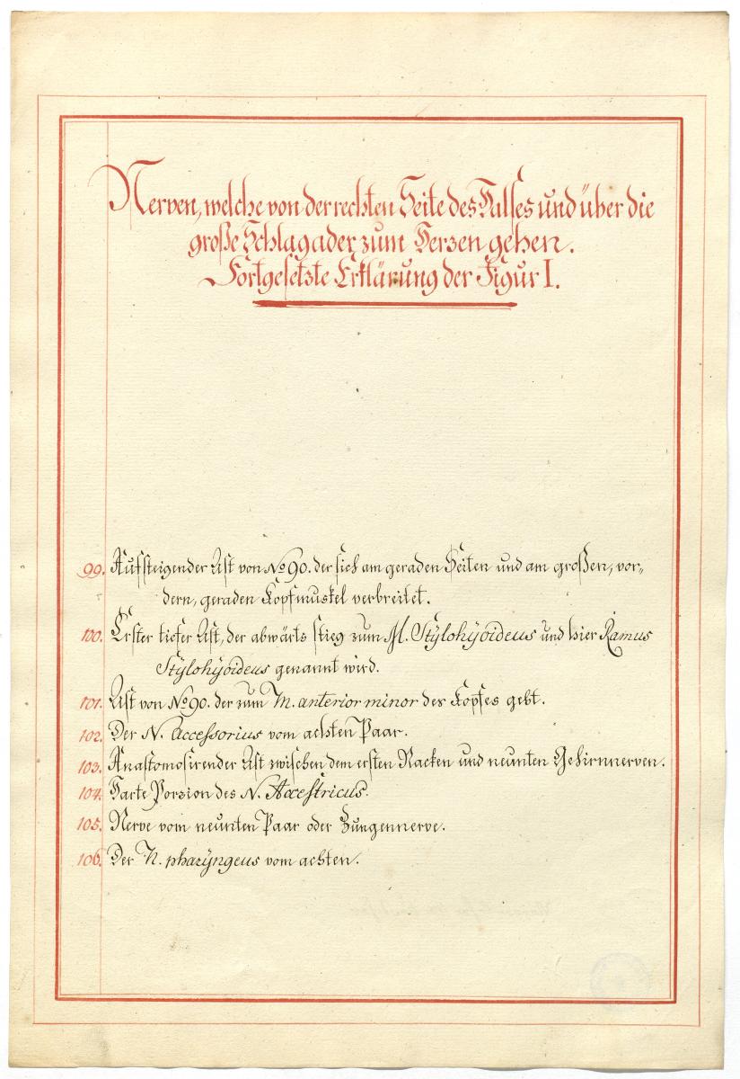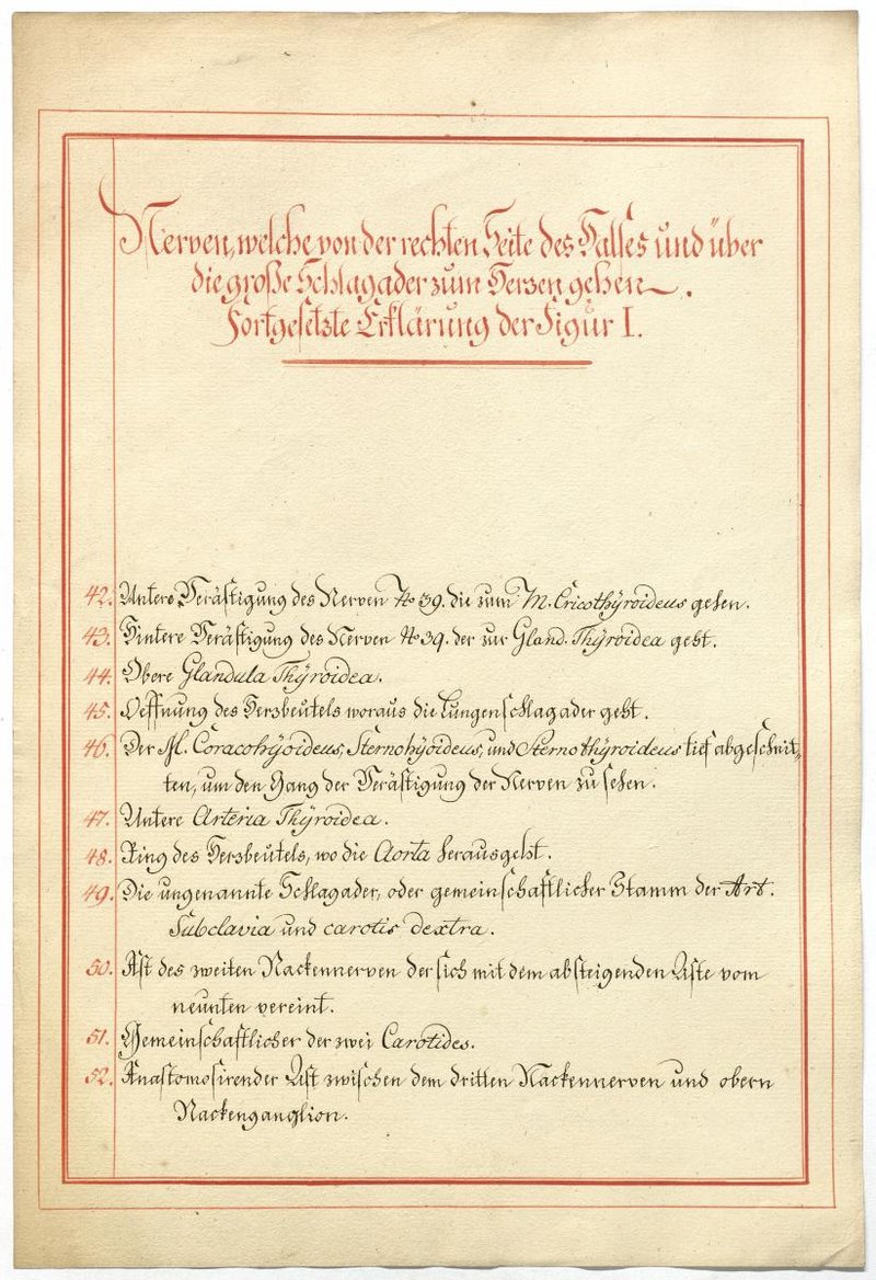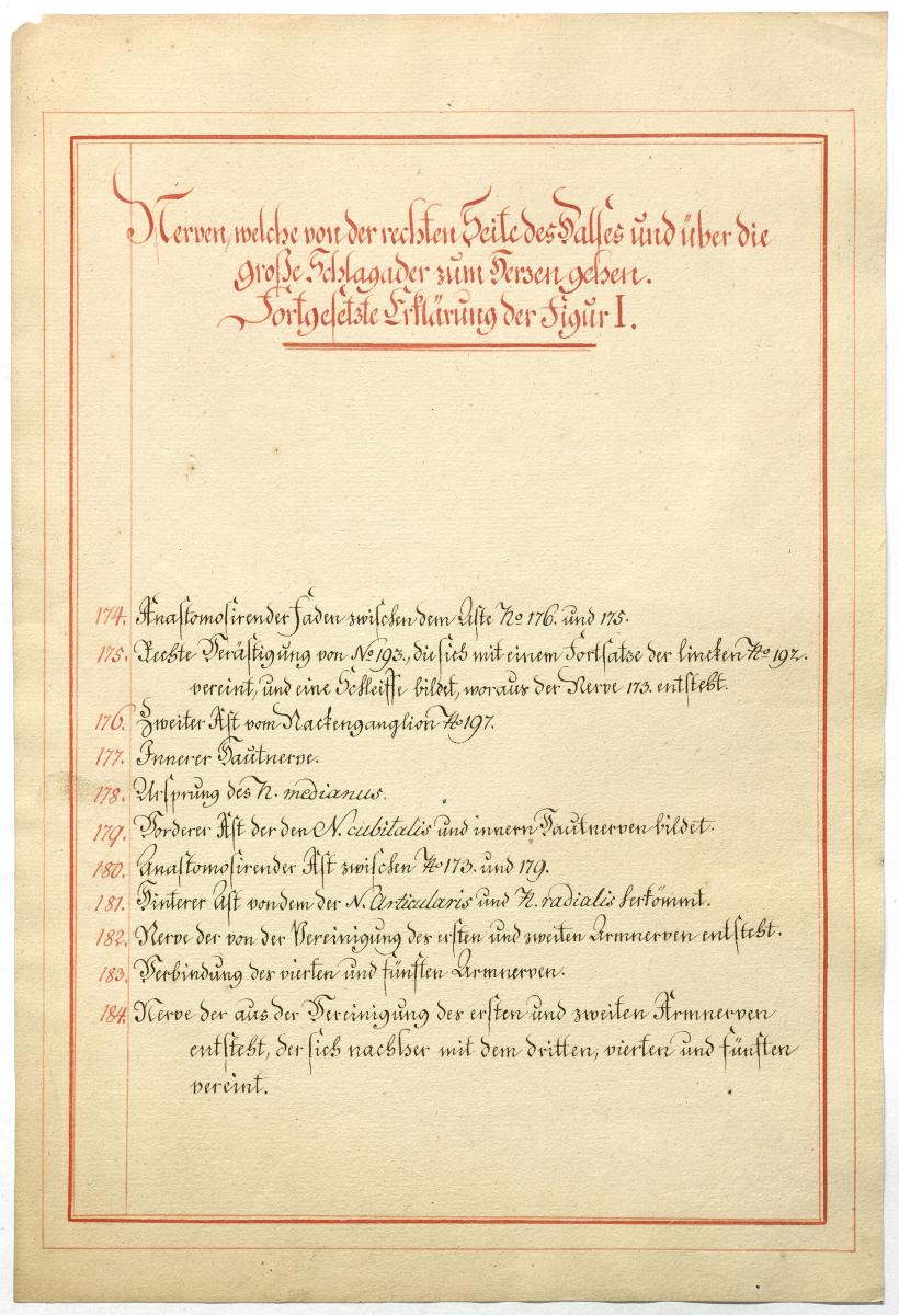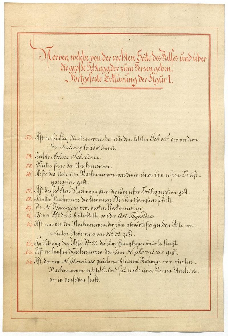 Der Text ist die ergänzende Beschreibung in deutscher Sprache zum anatomischen Wachsmodell des Nervus hypoglossus und Plexus cervicalis. Blatt 18 fehlt.
