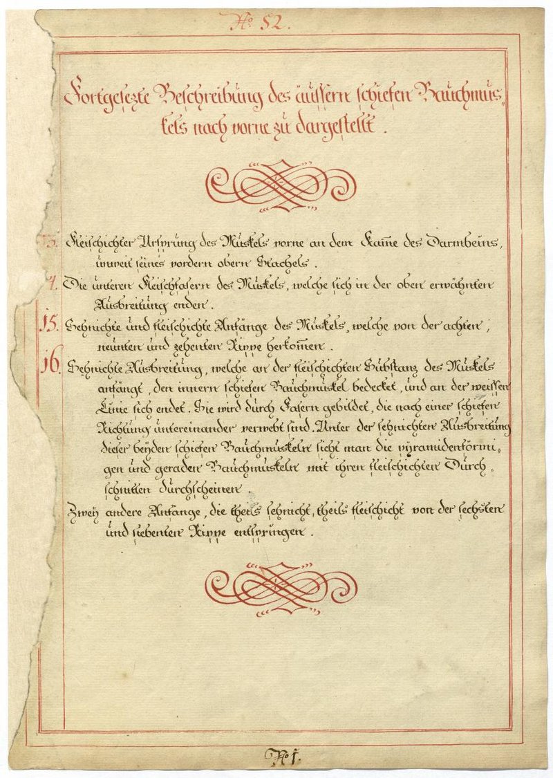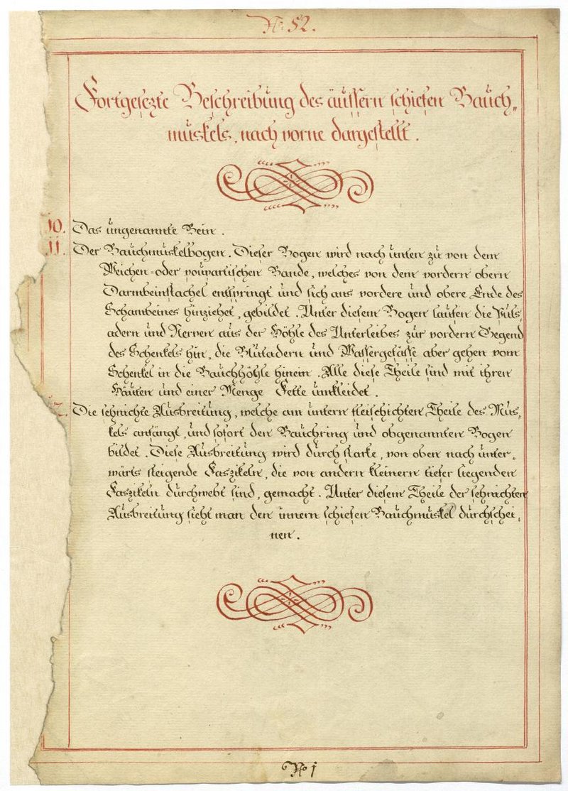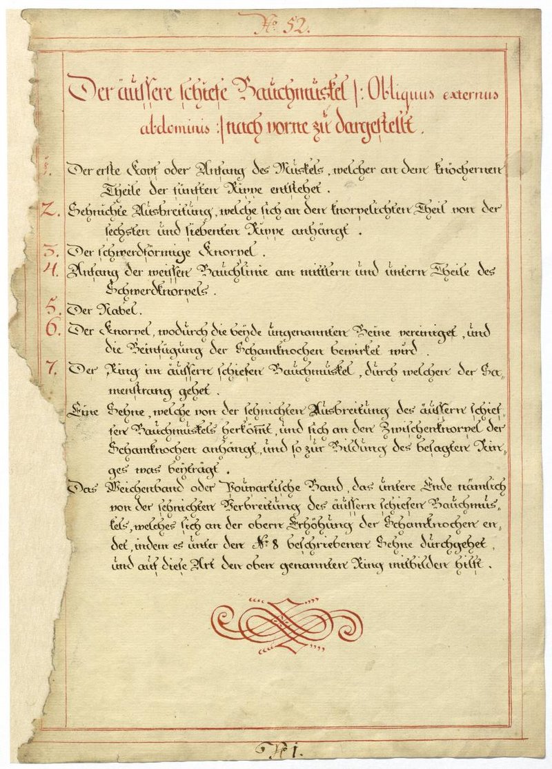Der Text ist die ergänzende Beschreibung in deutscher Sprache zum anatomischen Wachsmodell der Bauchmuskulatur.