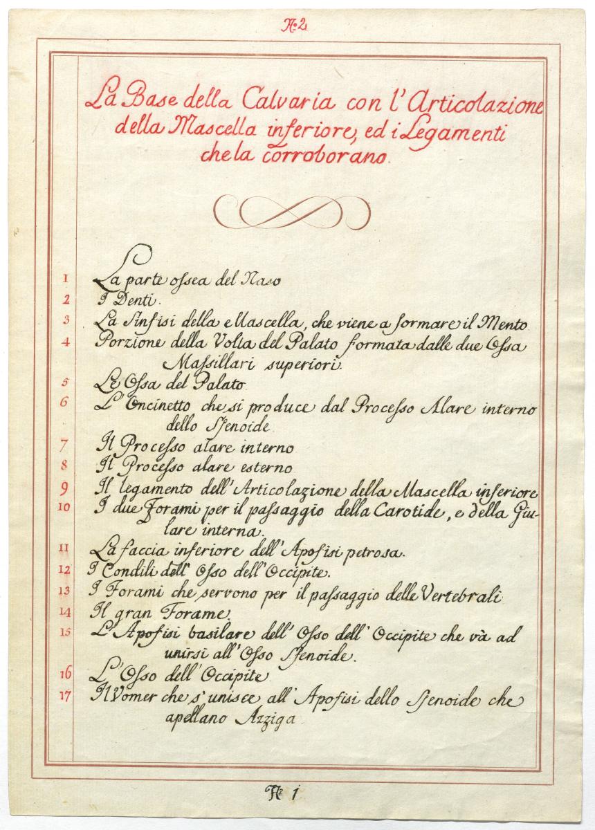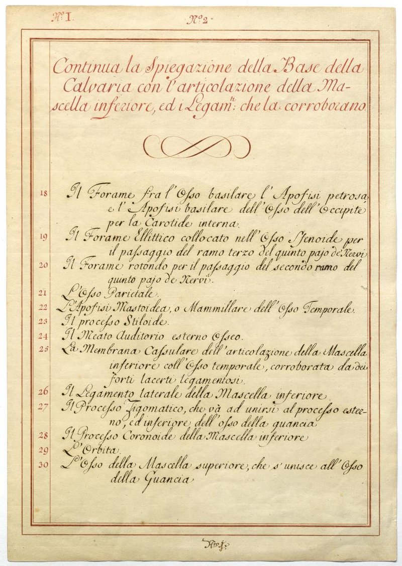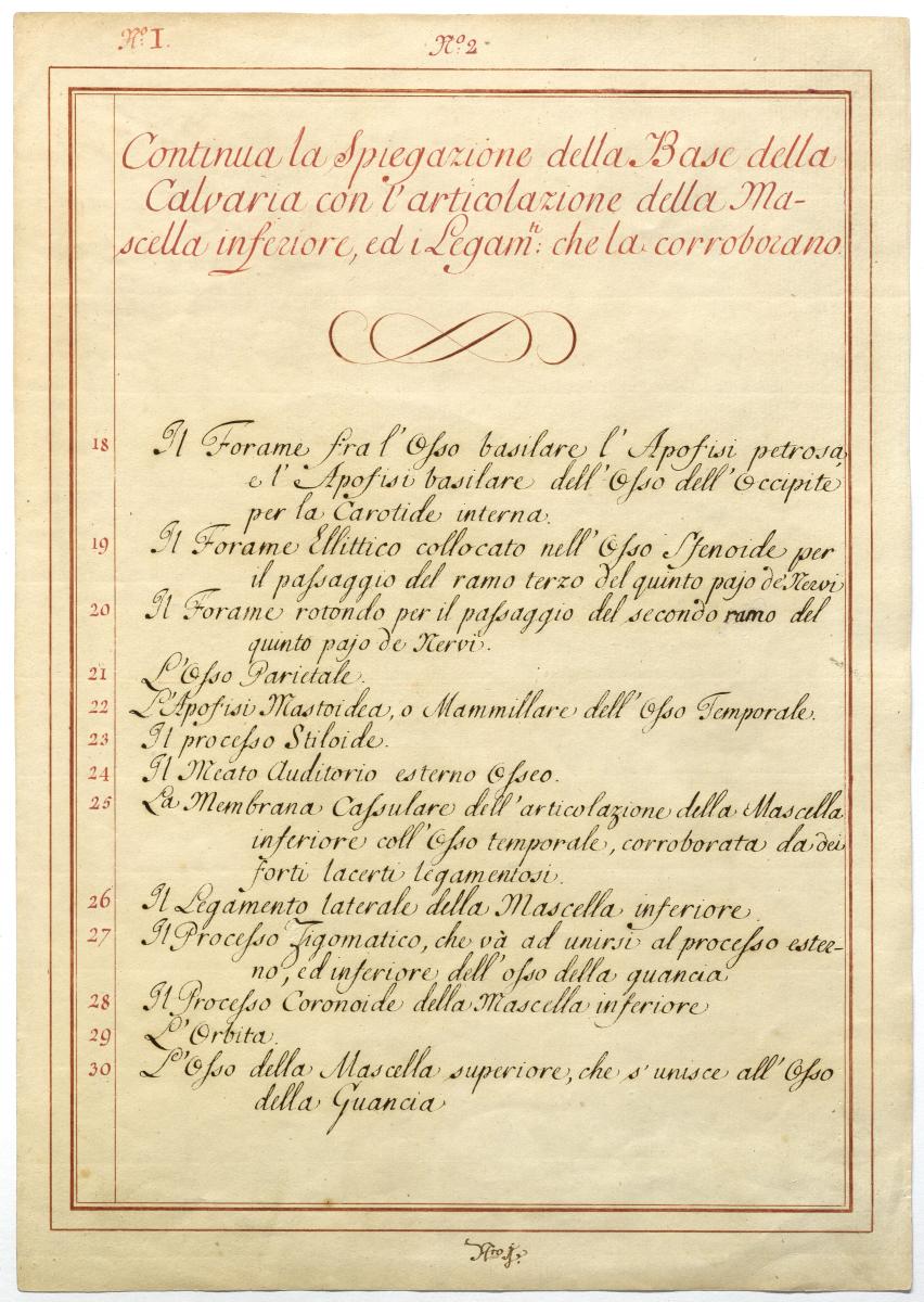 Der Text ist die ergänzende Beschreibung in italienischer Sprache zum anatomischen Wachsmodell der Kiefergelenke.
