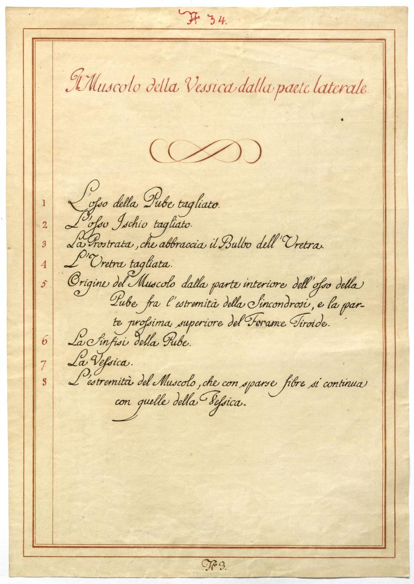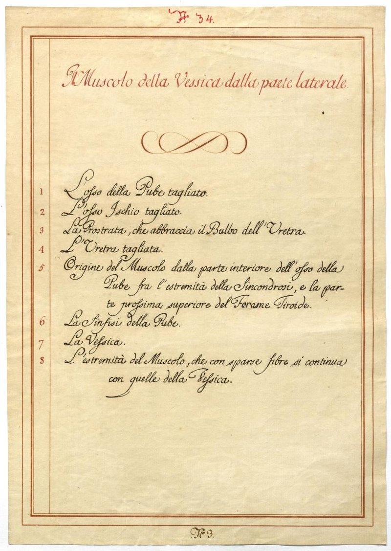 Der Text ist die ergänzende Beschreibung in italienischer Sprache zum anatomischen Wachsmodell der Harnblase.