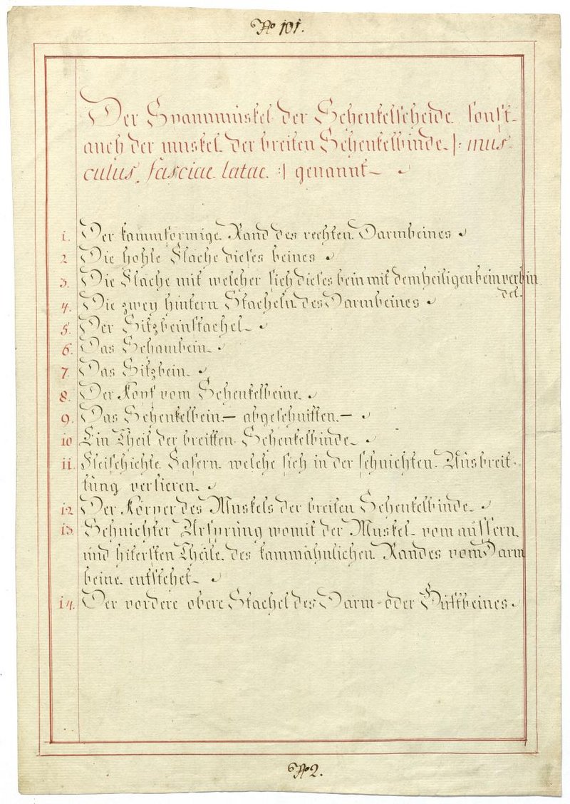 Der Text ist die ergänzende Beschreibung in deutscher Sprache zum anatomischen Wachsmodell der relevanten Muskeln im Hüftbereich.