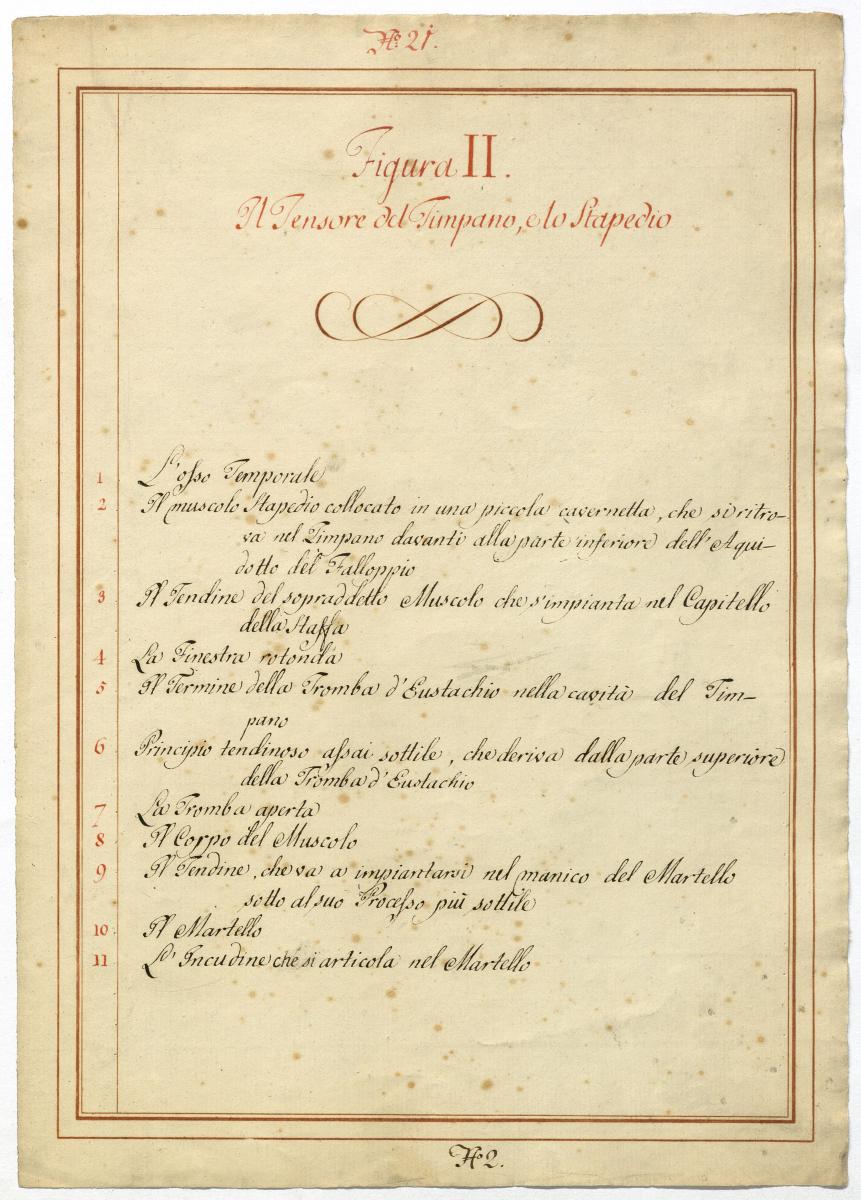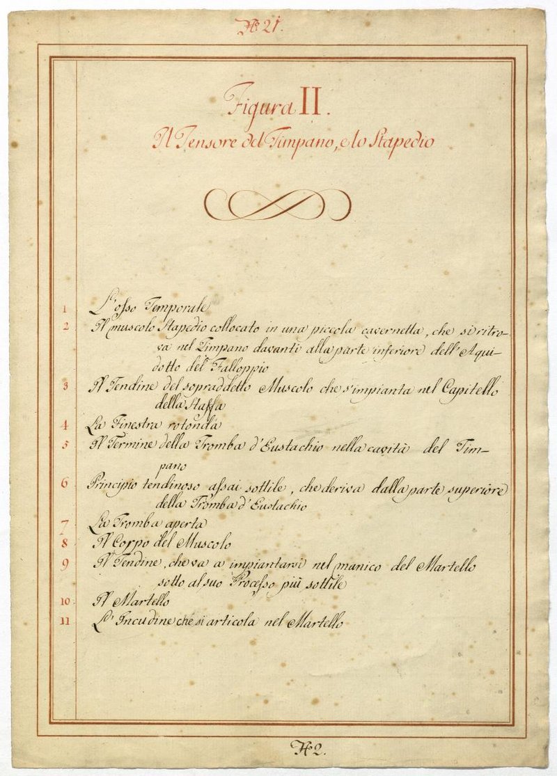 Der Text ist die ergänzende Beschreibung in italienischer Sprache zum anatomischen Wachsmodell des Ohres.