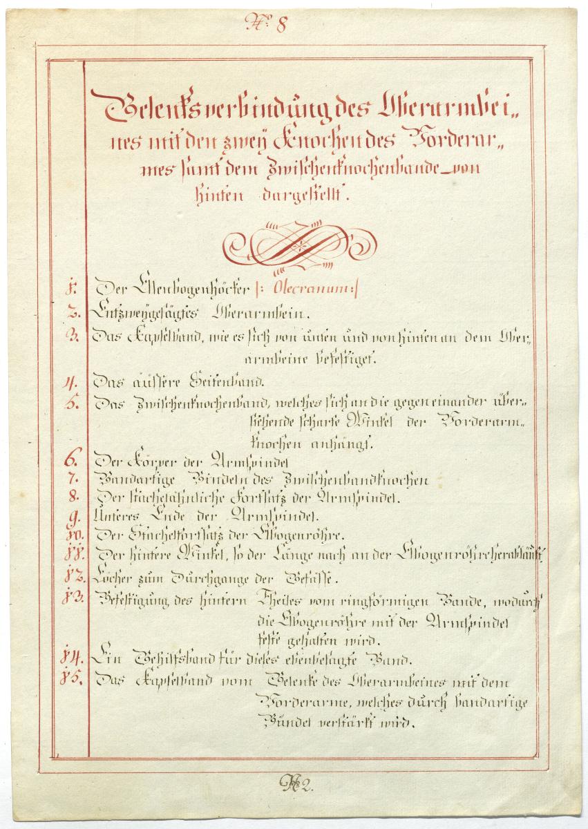 Der Text ist die ergänzende Beschreibung in deutscher Sprache zum anatomischen Wachsmodell des Unterarms, Ellenbogens und Handgelenks.