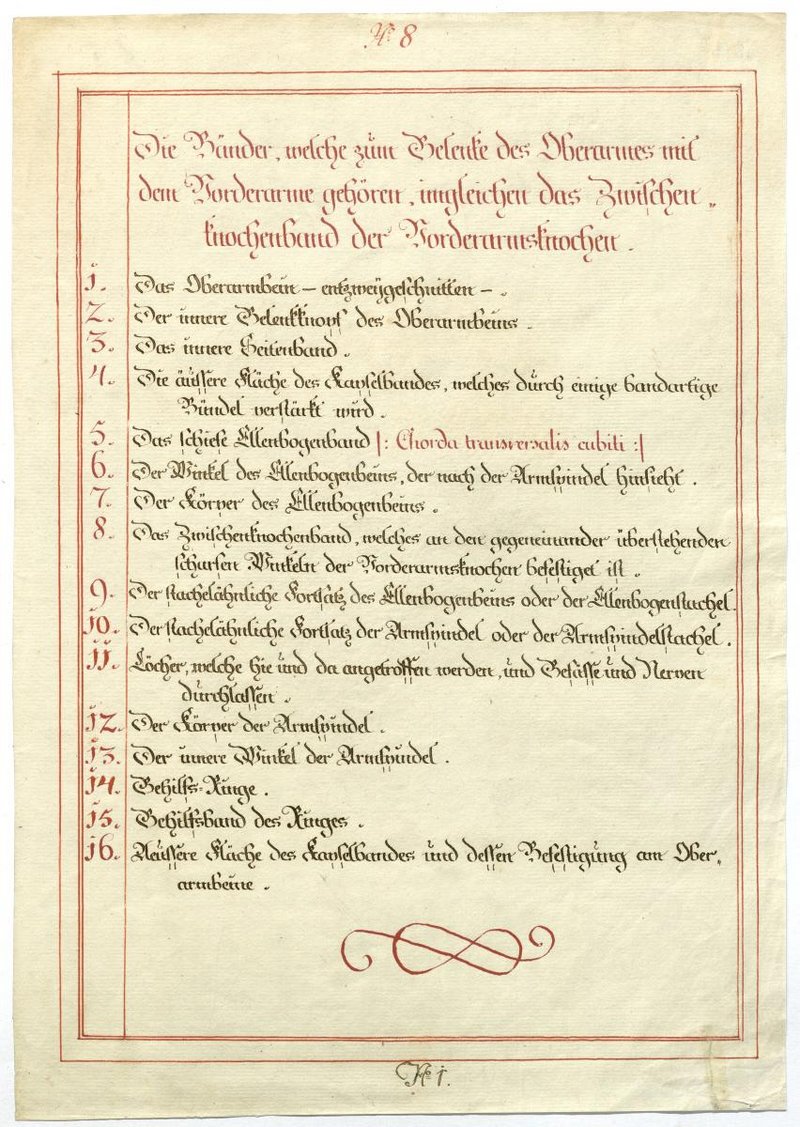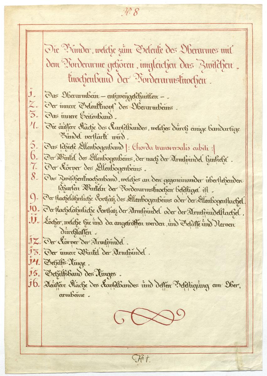 Der Text ist die ergänzende Beschreibung in deutscher Sprache zum anatomischen Wachsmodell des Unterarms, Ellenbogens und Handgelenks.