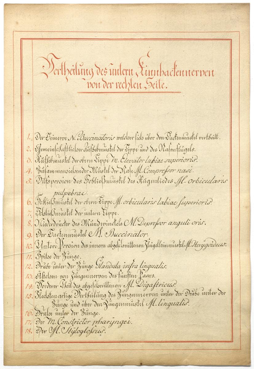 Der Text ist die ergänzende Beschreibung in deutscher Sprache zum anatomischen Wachsmodell des Nervus mandibularis.
