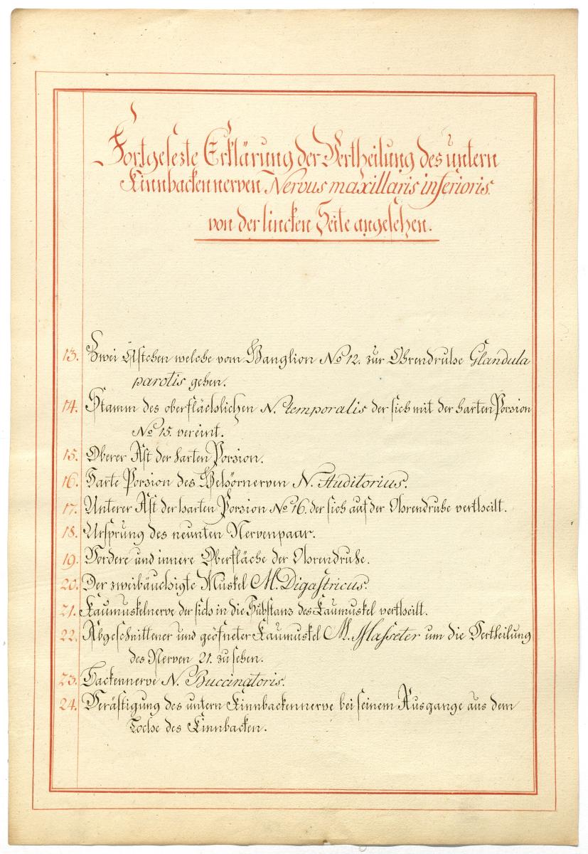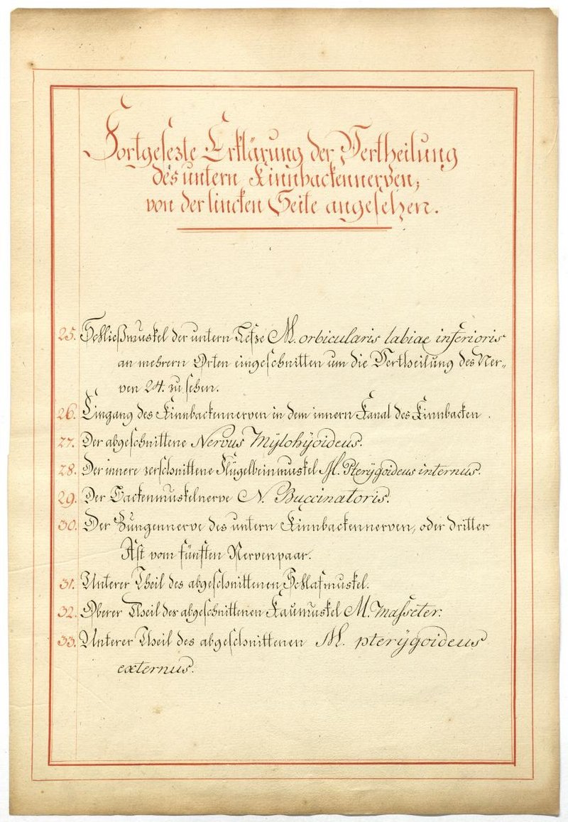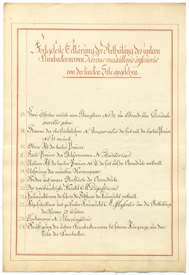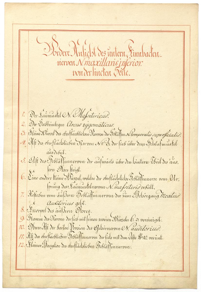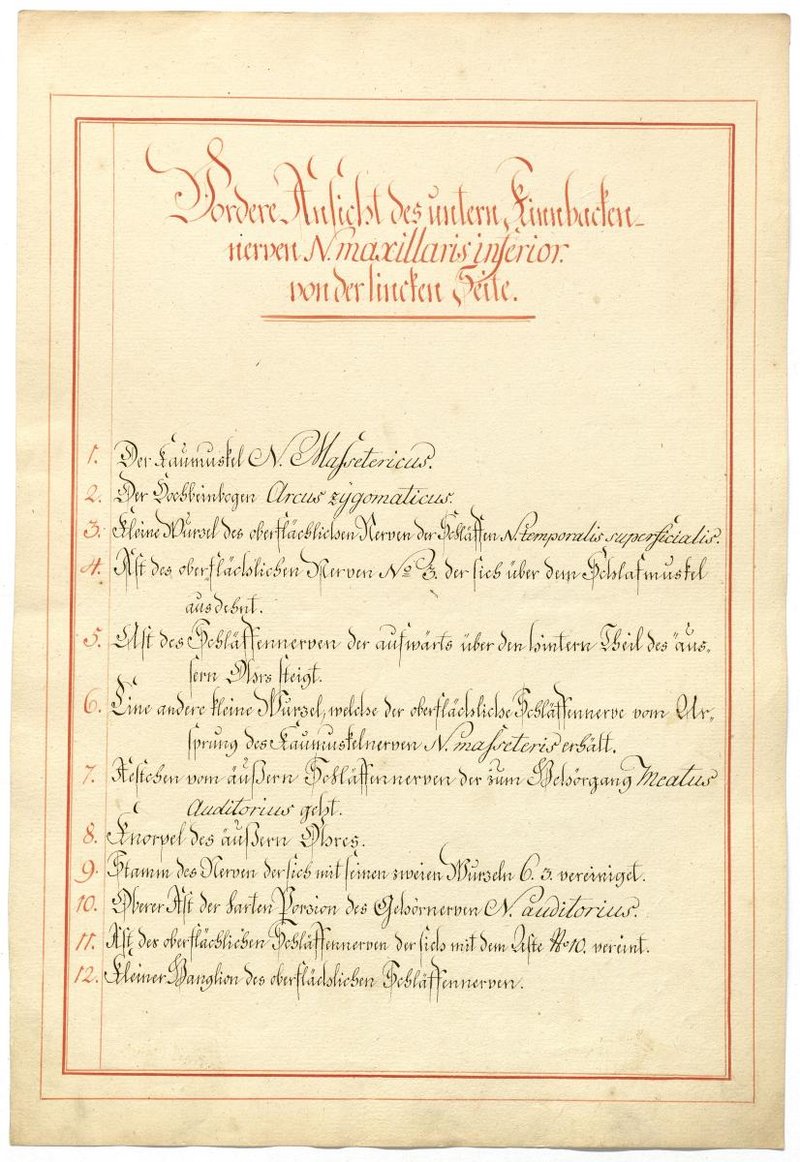 Der Text ist die ergänzende Beschreibung in deutscher Sprache zum anatomischen Wachsmodell des Nervus mandibularis.