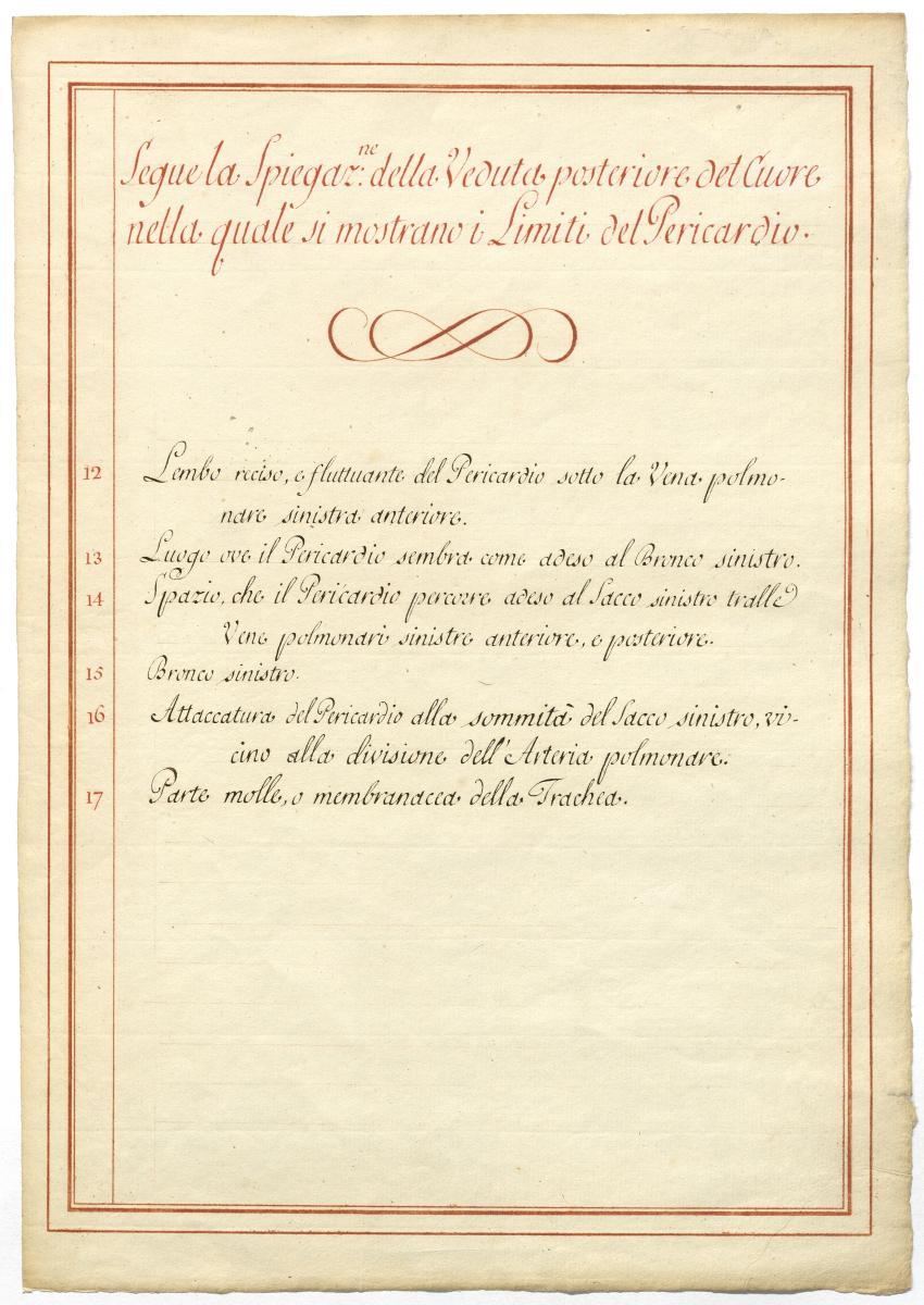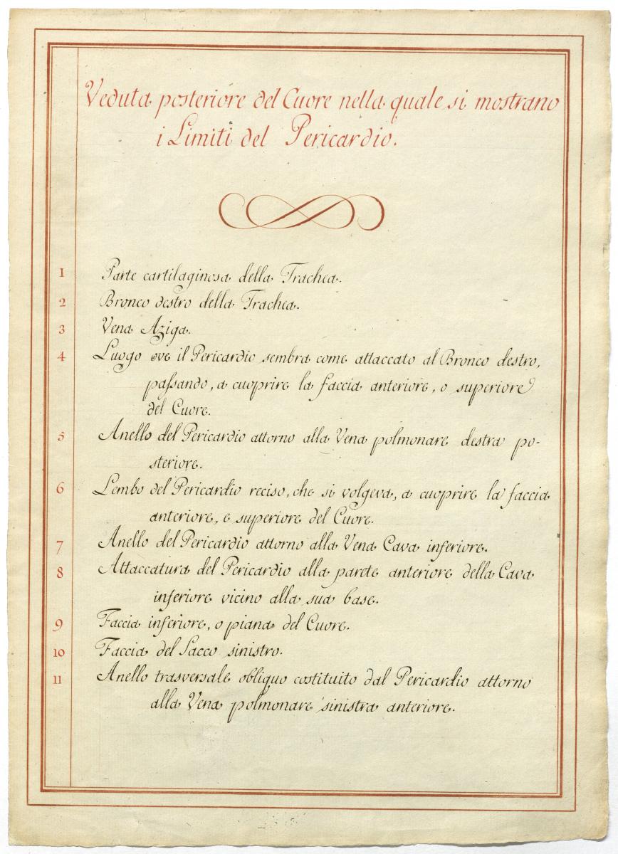 Der Text ist die ergänzende Beschreibung in italienischer Sprache zum anatomischen Wachsmodell des Herzens.