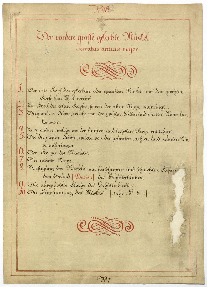Der Text ist die ergänzende Beschreibung in deutscher Sprache zum anatomischen Wachsmodell des Brustmuskels.