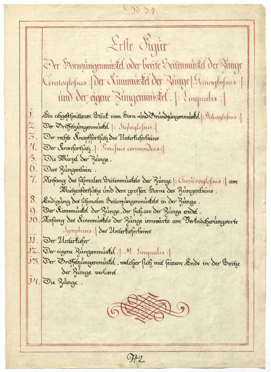 Der Text ist die ergänzende Beschreibung in deutscher Sprache zum anatomischen Wachsmodell der äußeren Zungenmuskulatur.