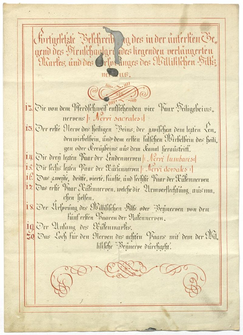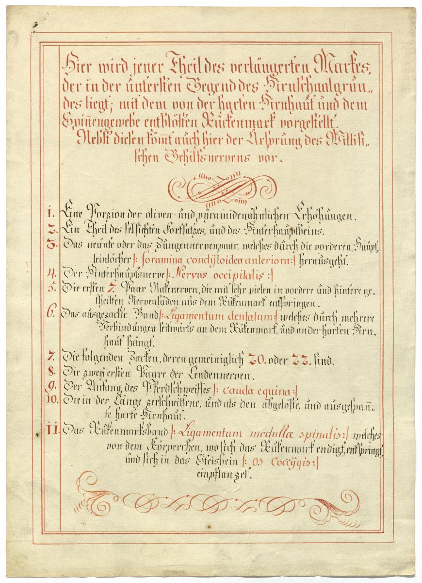 Der Text ist die ergänzende Beschreibung in deutscher Sprache zum anatomischen Wachsmodell des Rückenmarks.