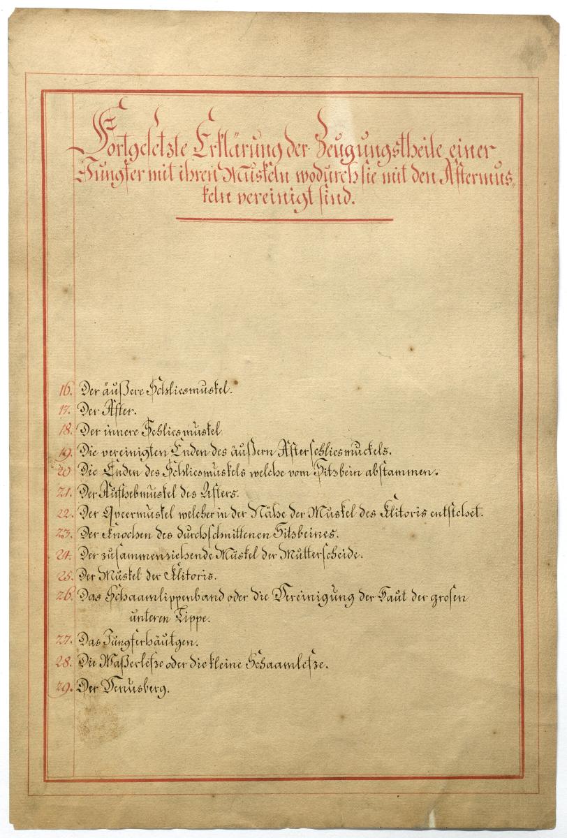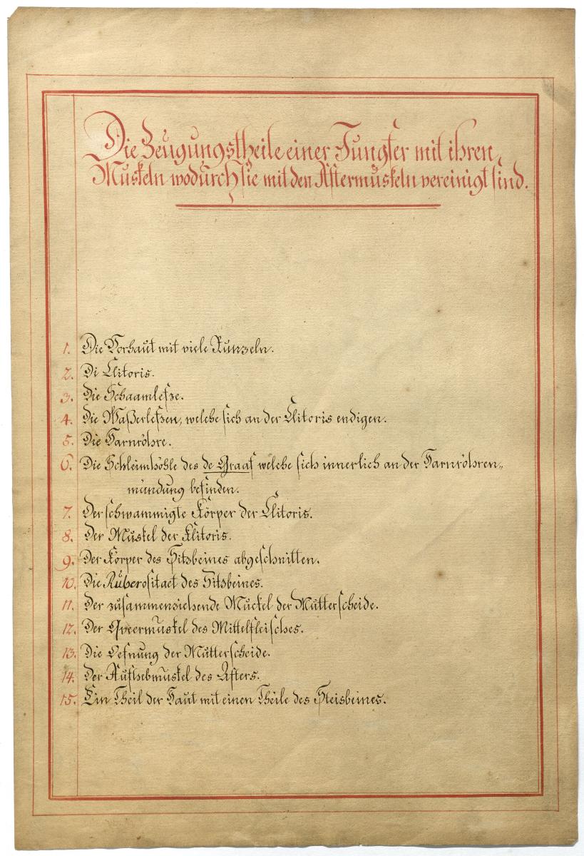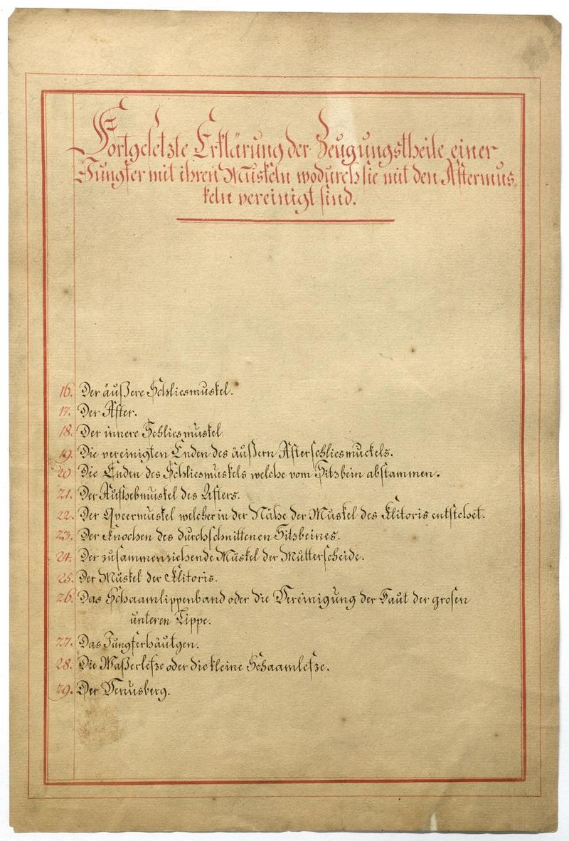Der Text ist die ergänzende Beschreibung in deutscher Sprache zum anatomischen Wachsmodell des weiblichen Genitale.