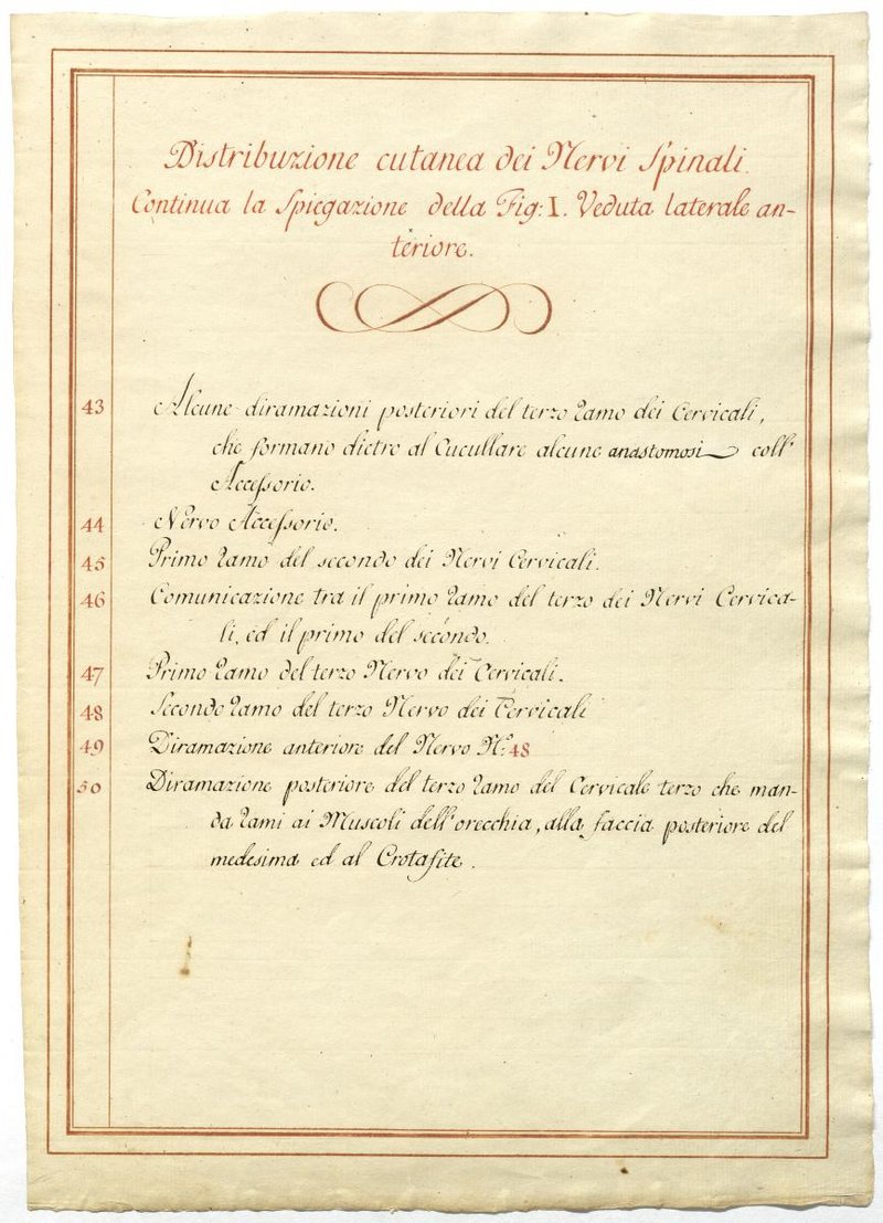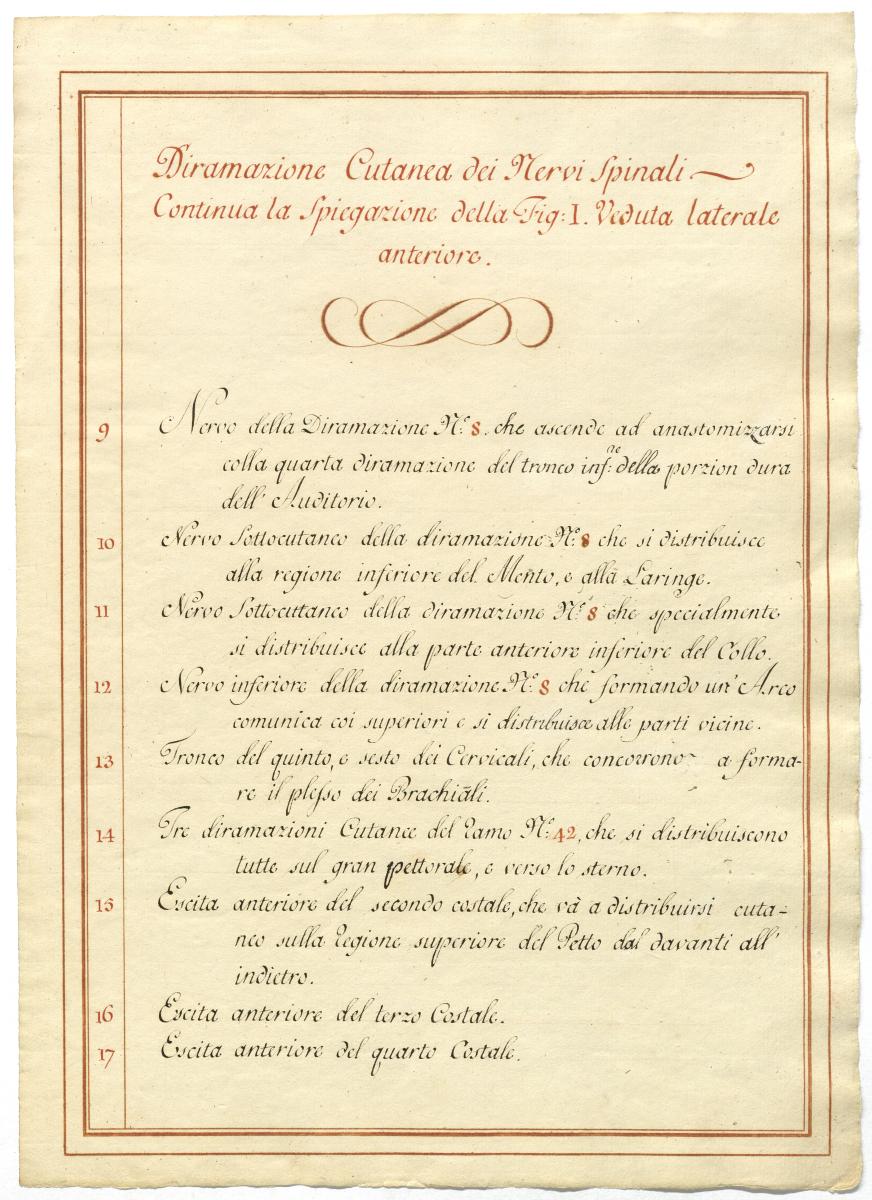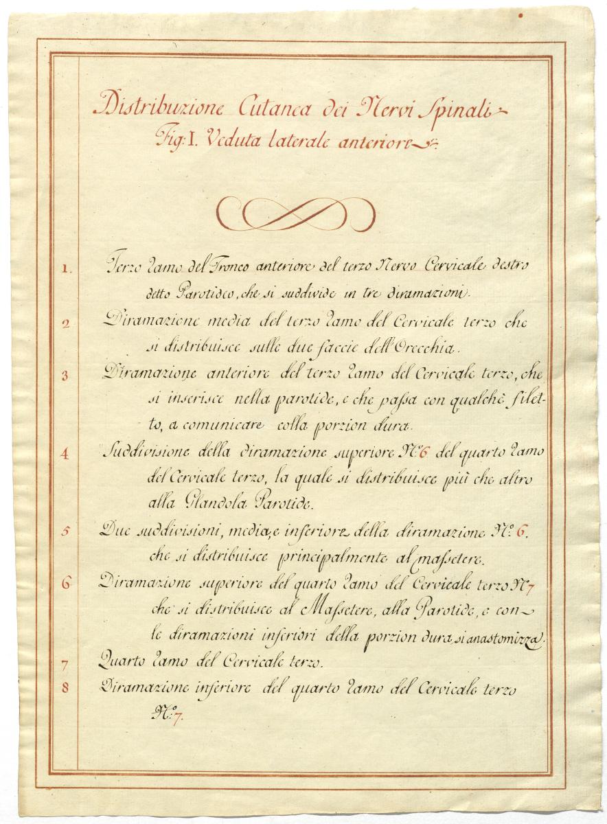 Der Text ist die ergänzende Beschreibung in italienischer Sprache zum anatomischen Wachsmodell des Halsnerven.