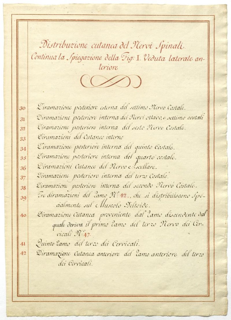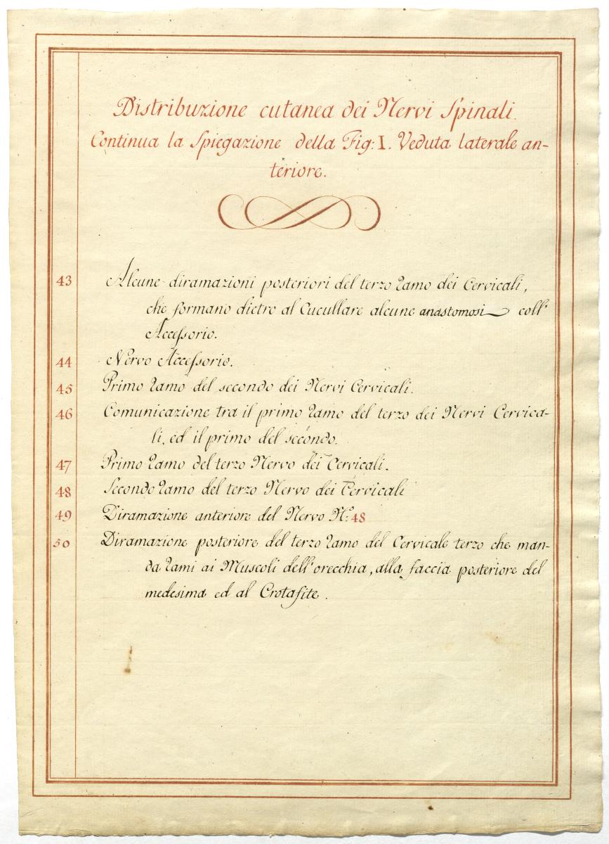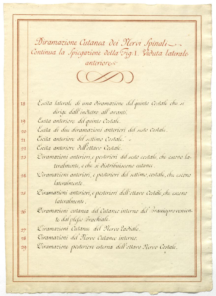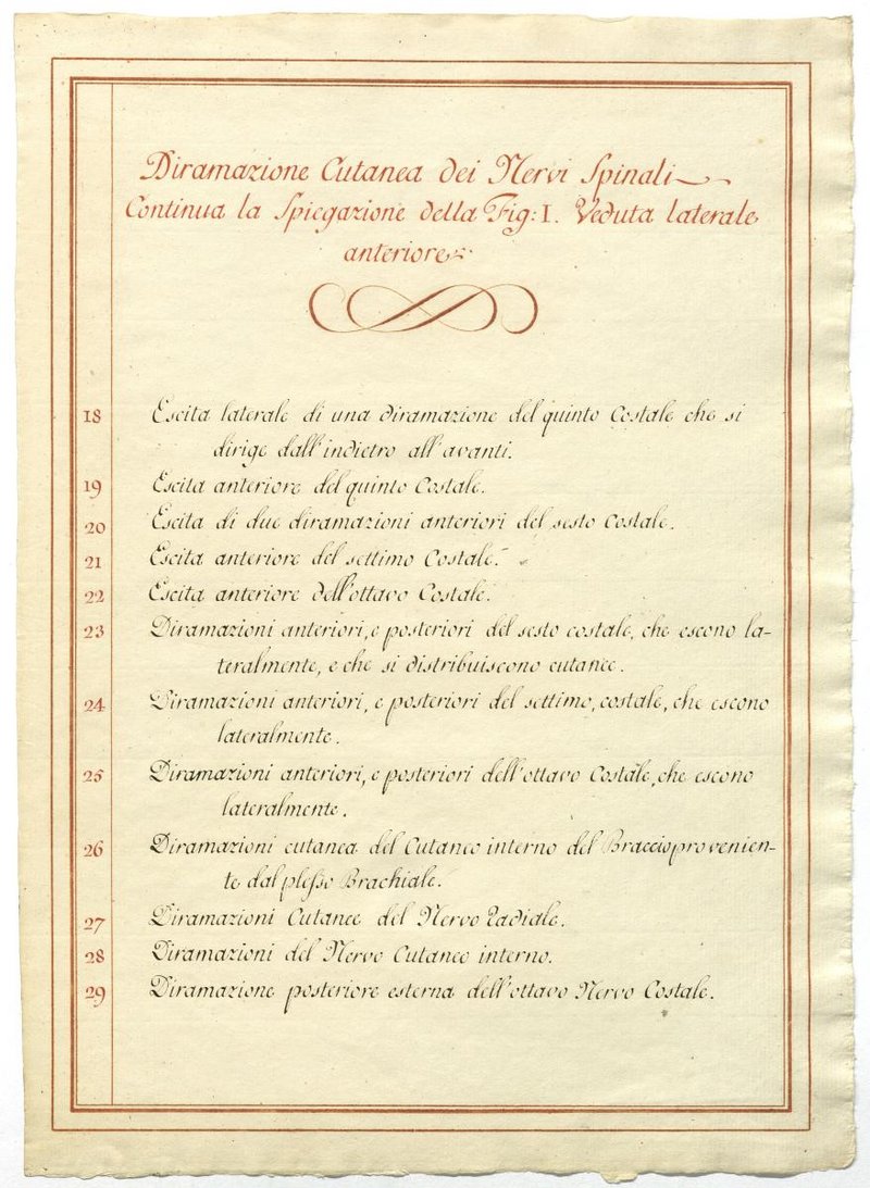 Der Text ist die ergänzende Beschreibung in italienischer Sprache zum anatomischen Wachsmodell des Halsnerven.
