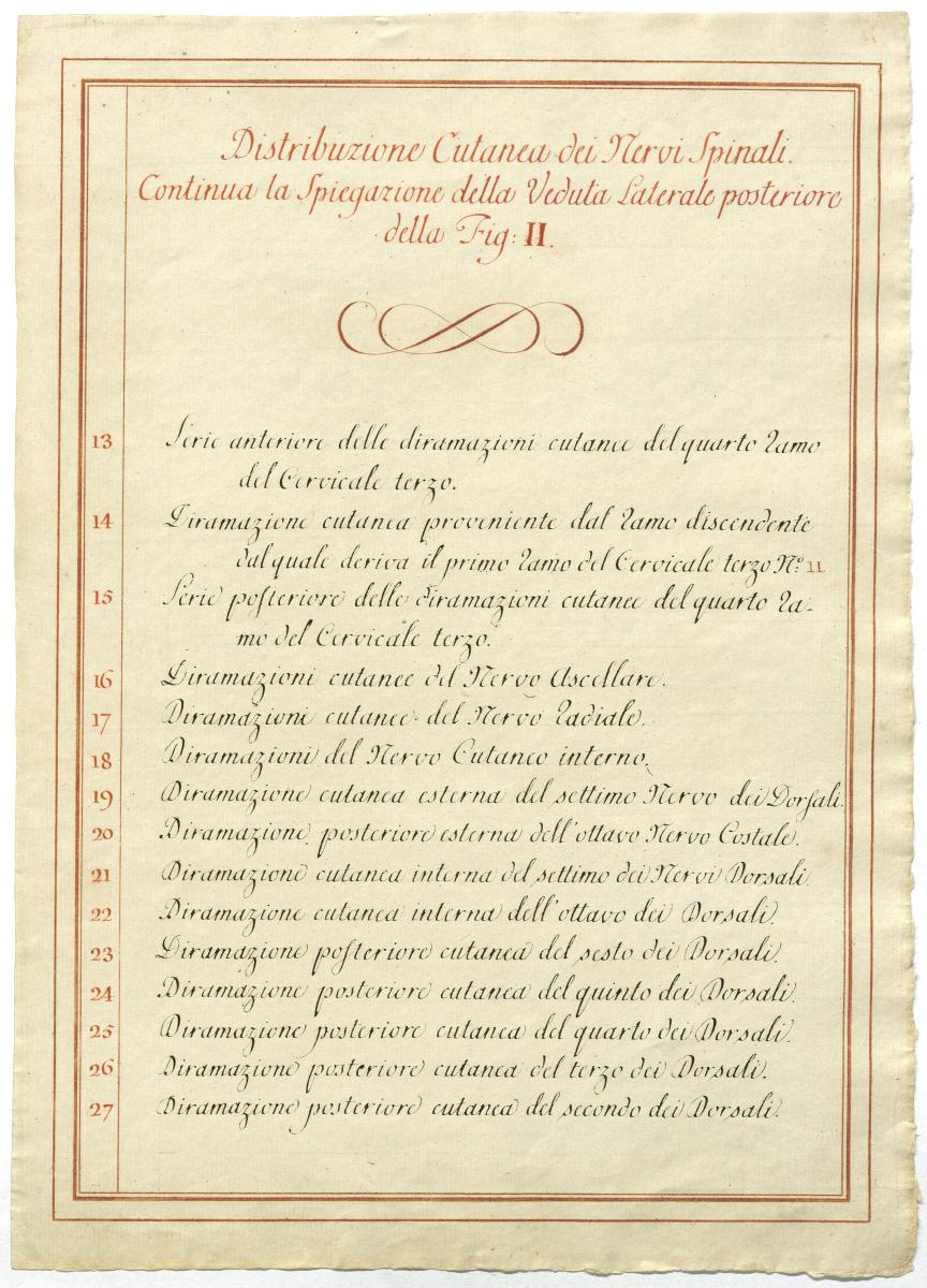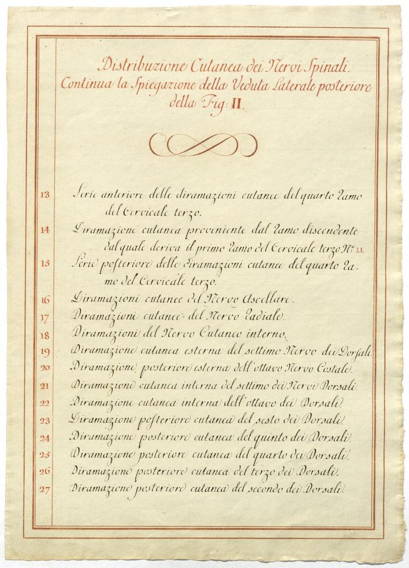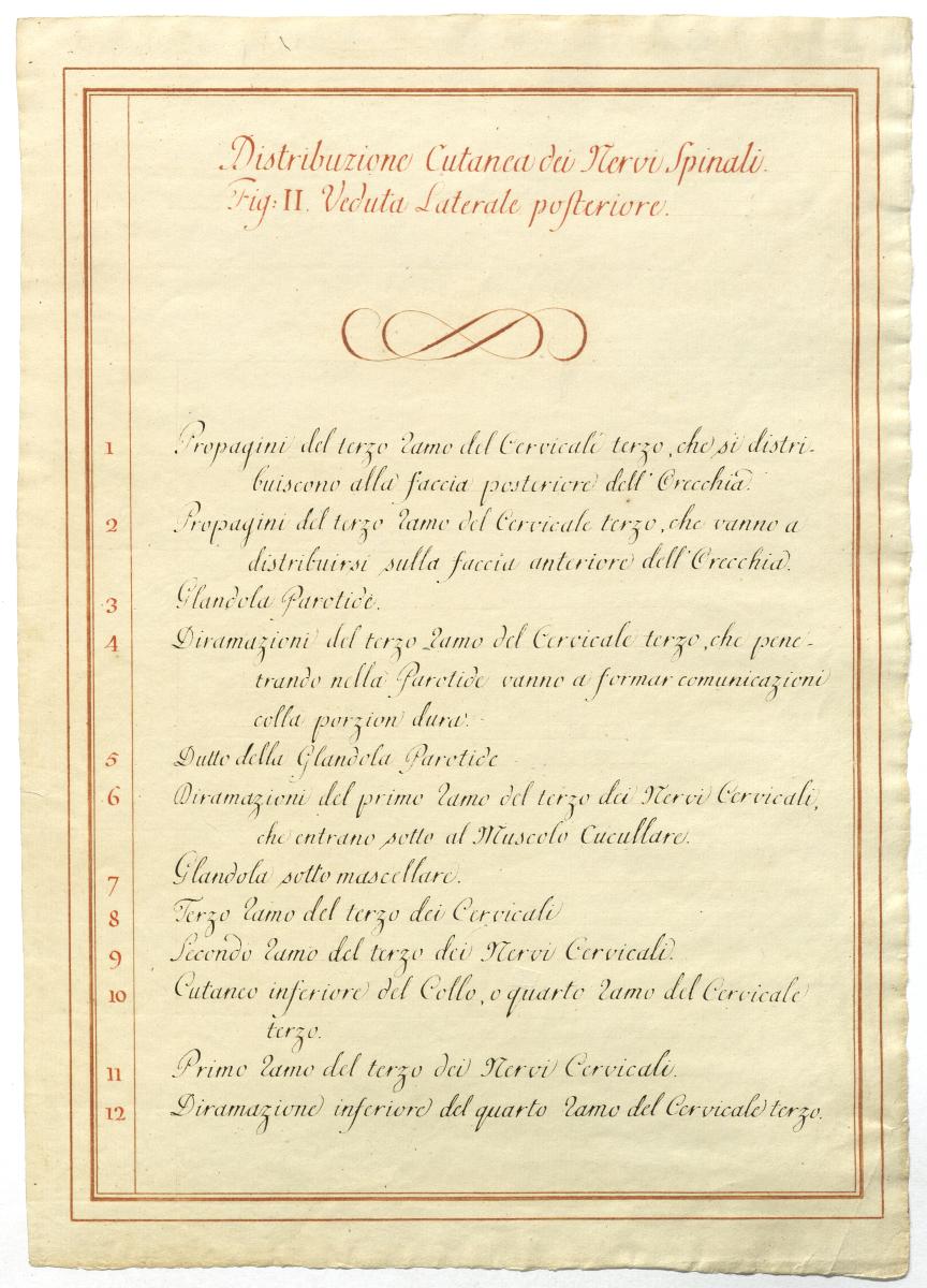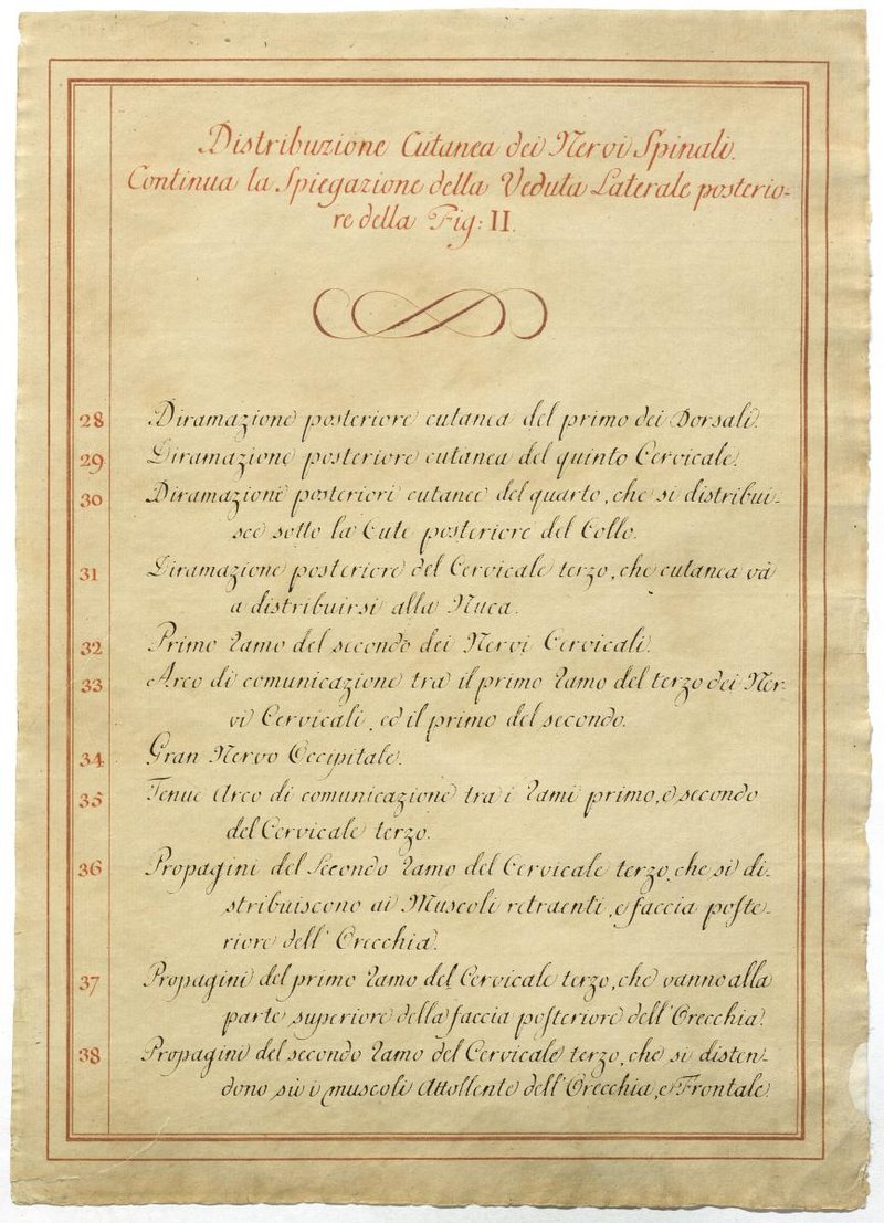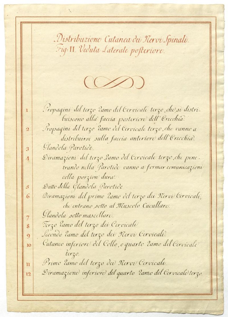 Der Text ist die ergänzende Beschreibung in italienischer Sprache zum anatomischen Wachsmodell des Halsnerven.