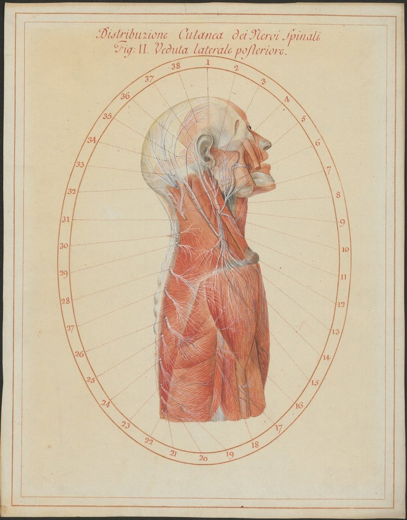 Die am sogenannten Punctum nervosum des Halses austretenden Nerven und deren Hautäste in der Brust- und Schultergegend.