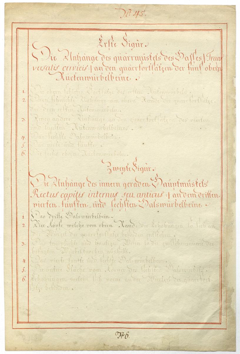 Der Text ist die ergänzende Beschreibung in deutscher Sprache zum anatomischen Wachsmodell der autochthonen Muskeln des Halses. Es handelt sich um Beischreibungen zu den Wachsmodellen 40/5 und 42/5.