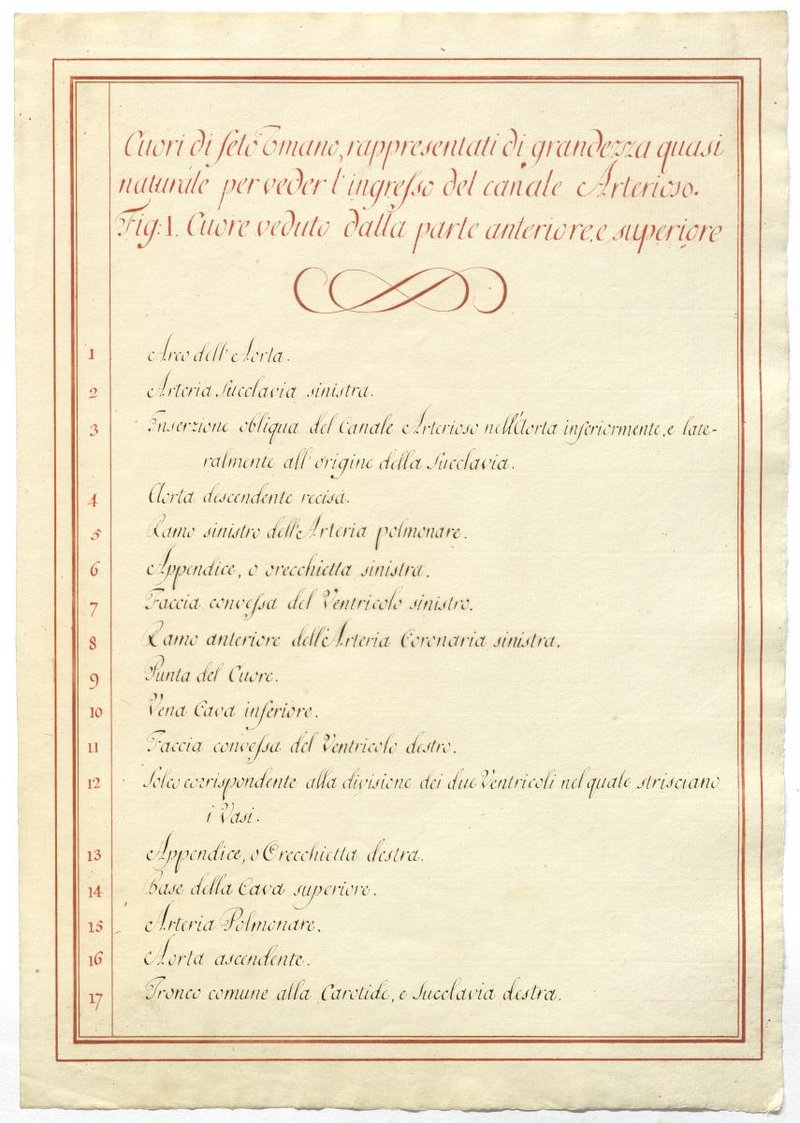 Der Text ist die ergänzende Beschreibung in italienischer Sprache zum anatomischen Wachsmodell des Fetalkreislaufes.