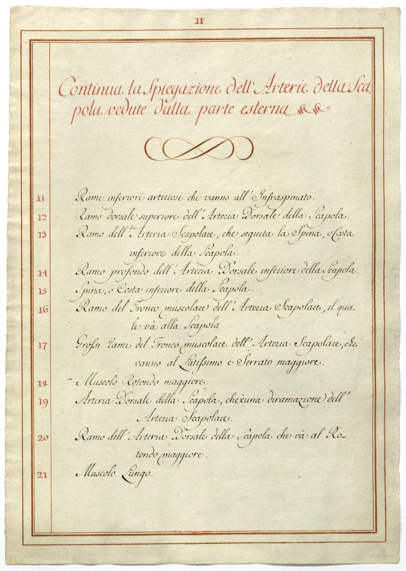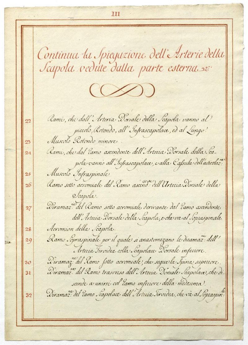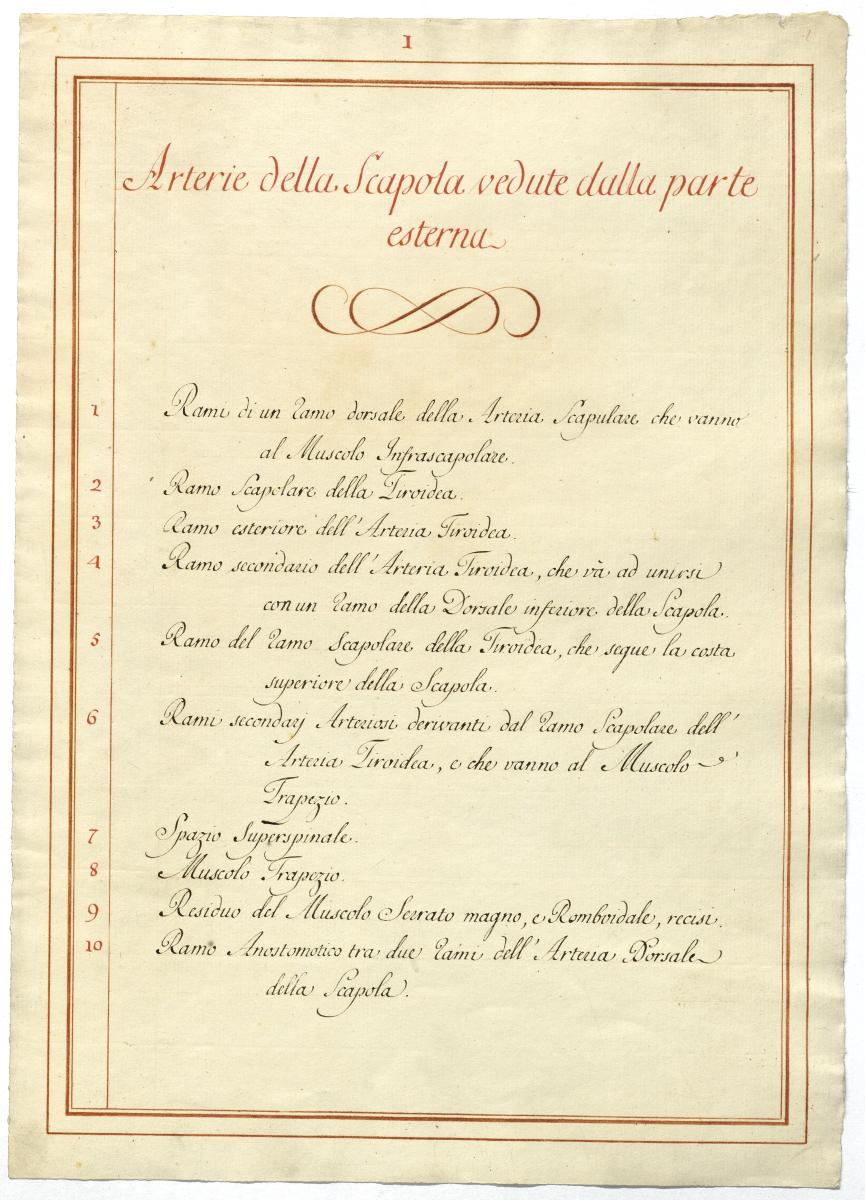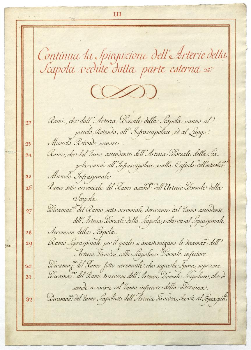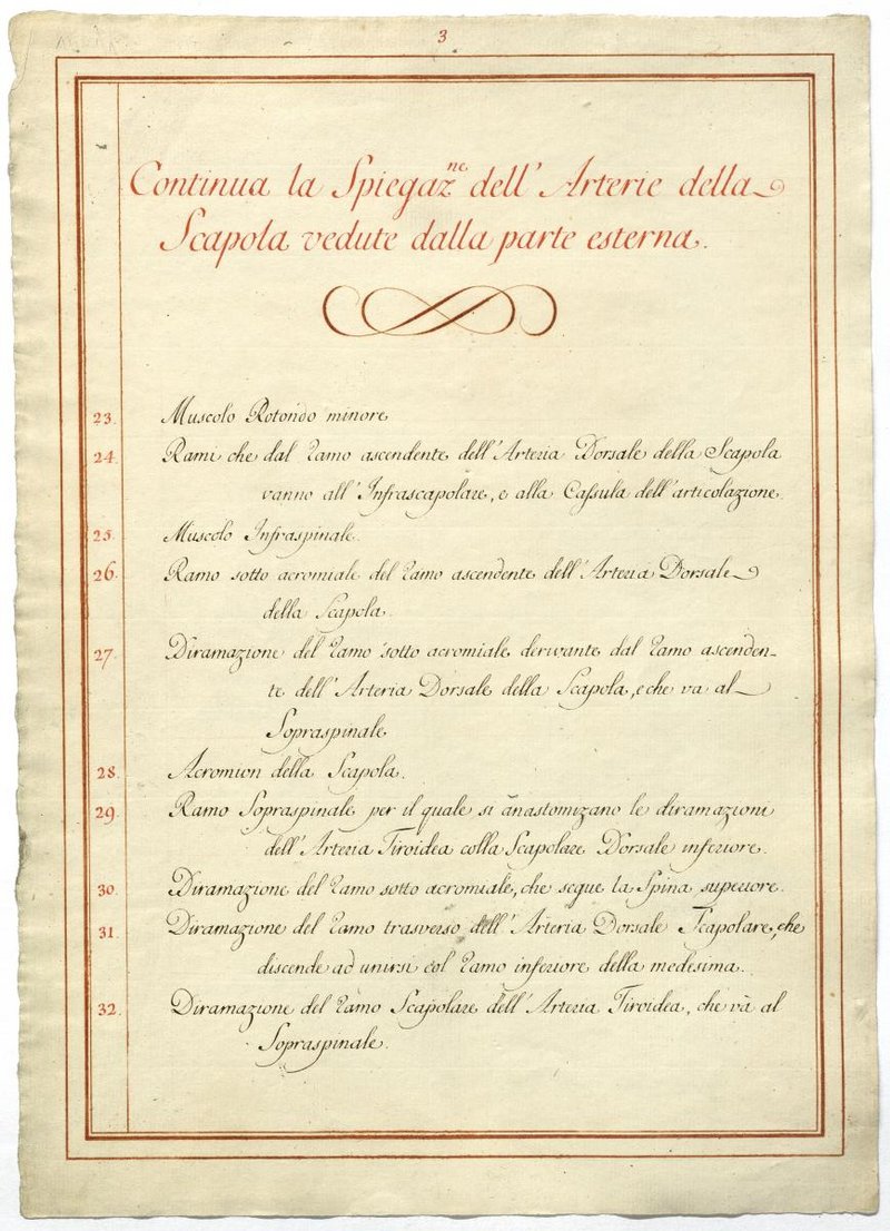Der Text ist die ergänzende Beschreibung in italienischer Sprache zum anatomischen Wachsmodell der Armarterien. Blatt 3 ist doppelt überliefert.