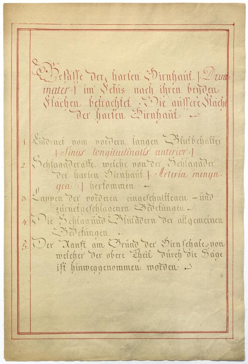 Der Text ist die ergänzende Beschreibung in deutscher Sprache zum anatomischen Wachsmodell der Meningealgefäße.