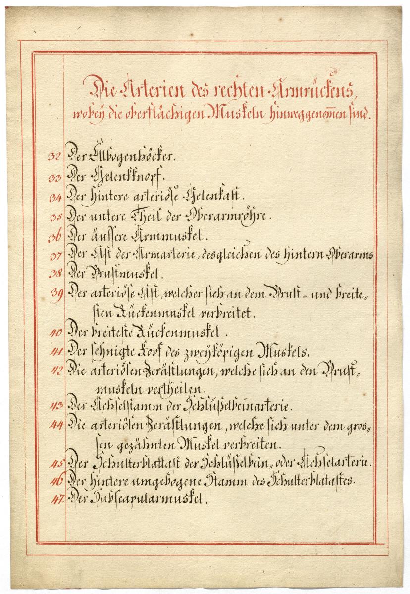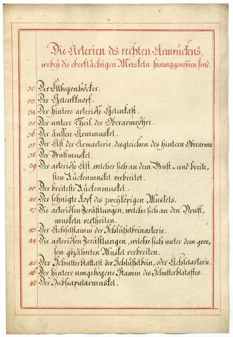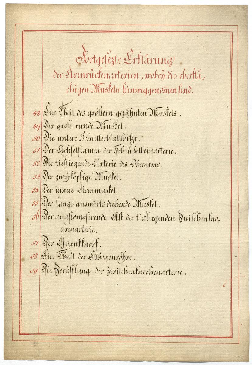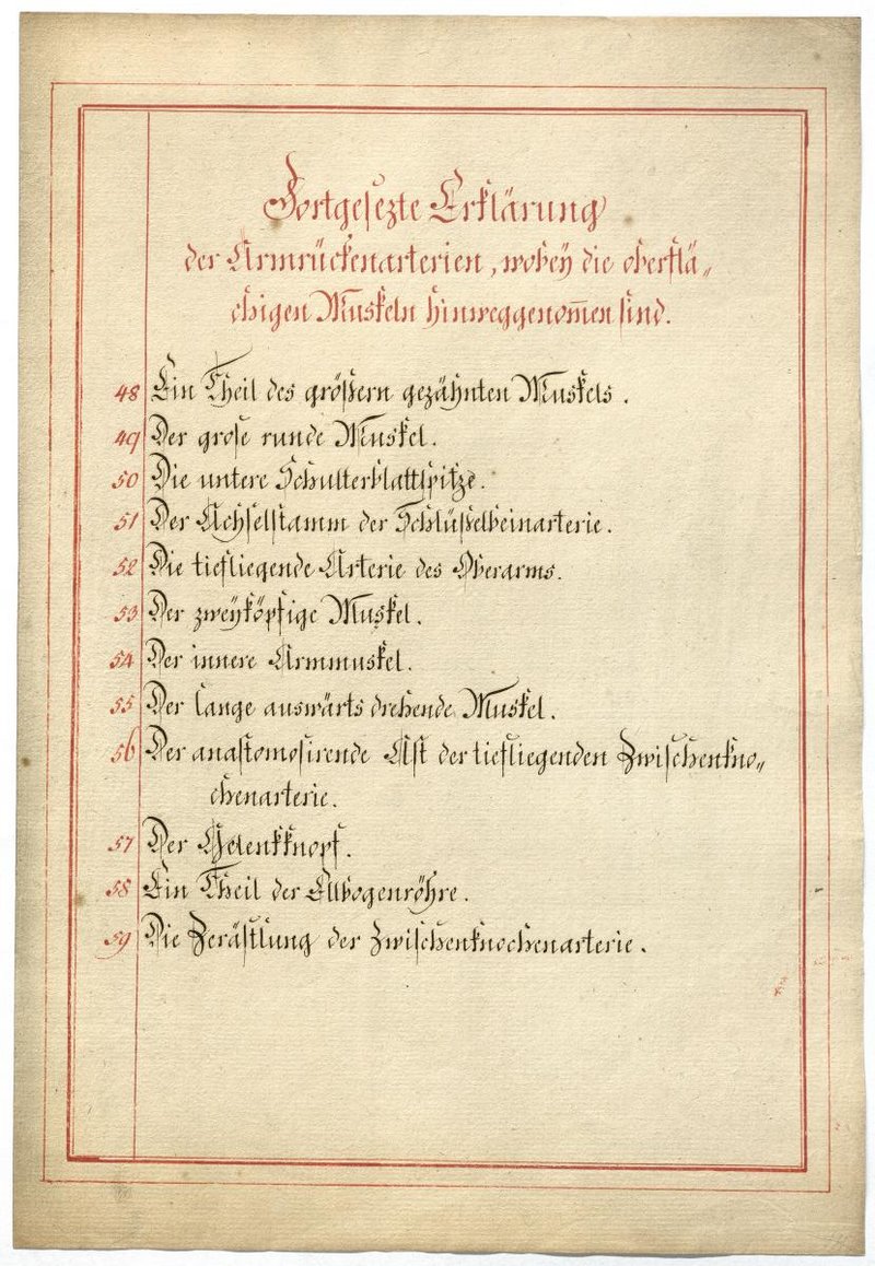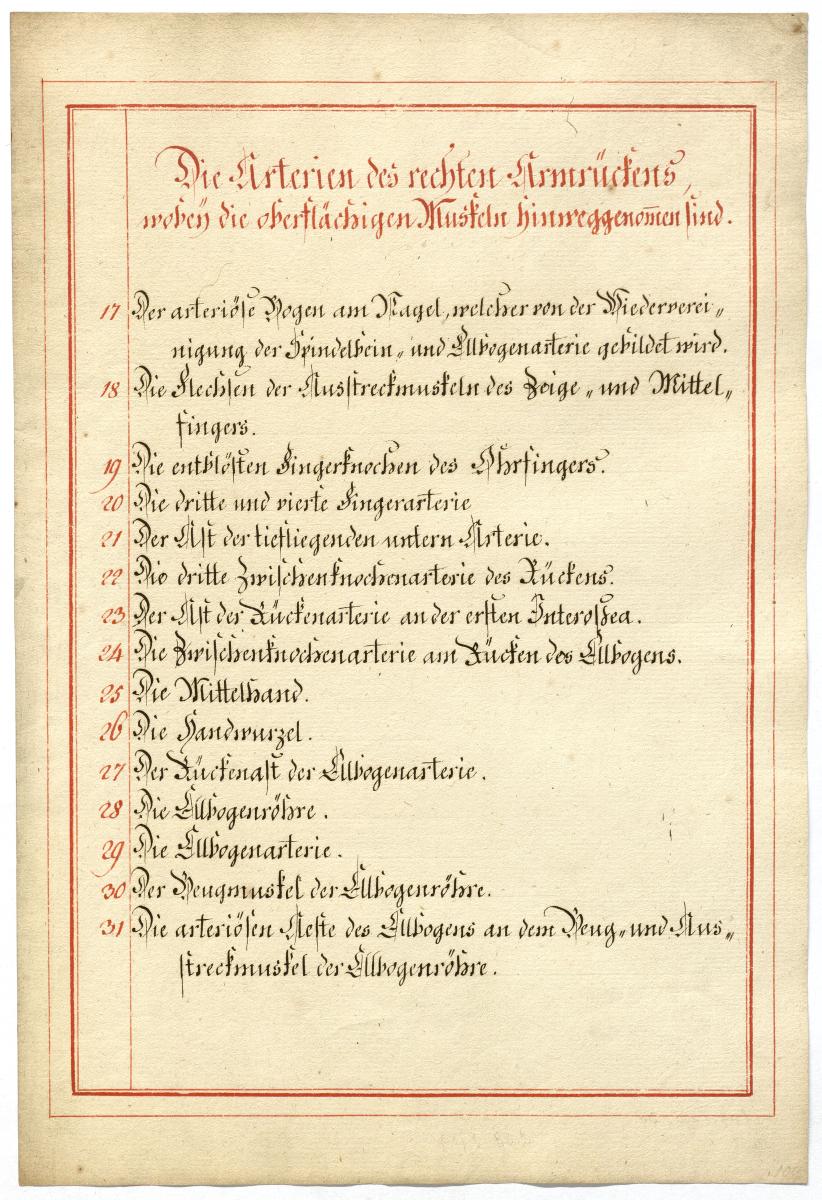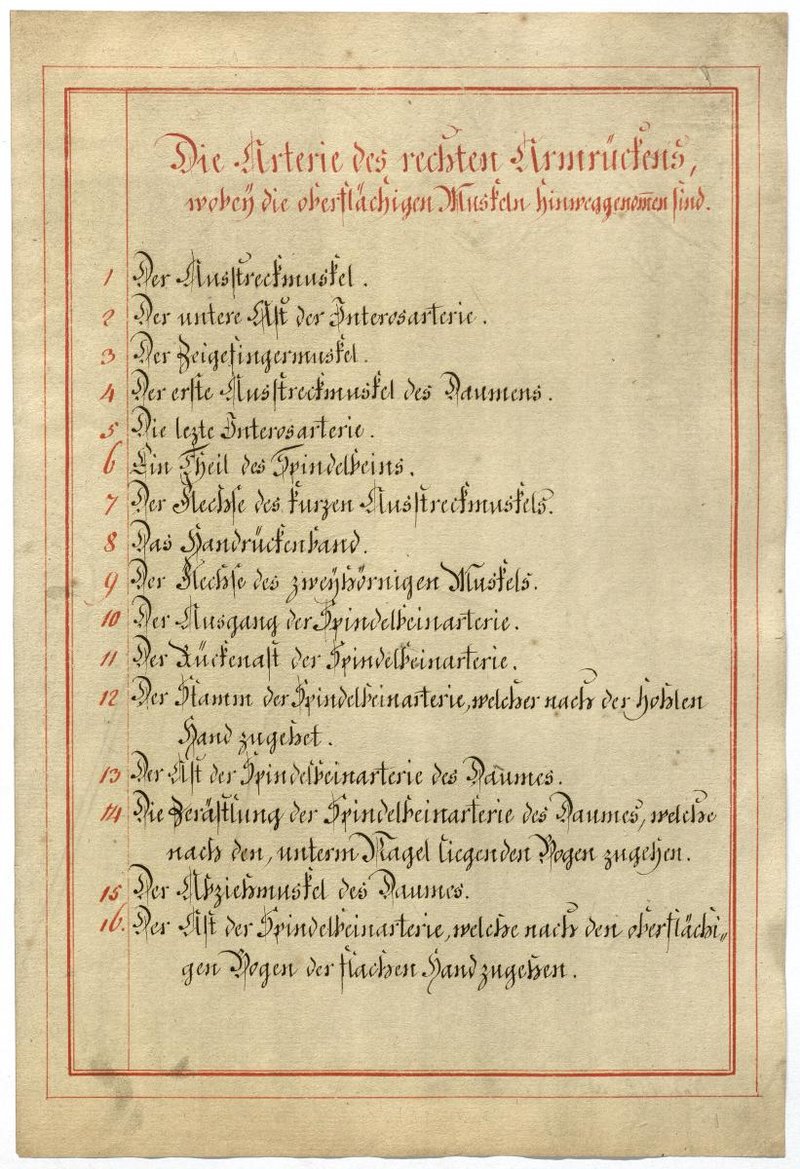 Der Text ist die ergänzende Beschreibung in deutscher Sprache zum anatomischen Wachsmodell der Armarterien.
