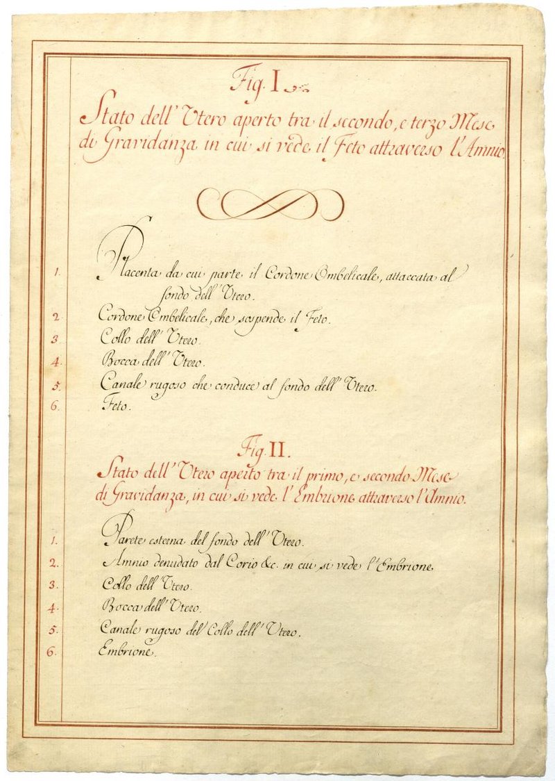 Der Text ist die ergänzende Beschreibung in italienischer Sprache zum anatomischen Wachsmodell der Gebärmutter.