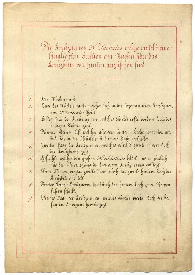 Der Text ist die ergänzende Beschreibung in deutscher Sprache zum anatomischen Wachsmodell des Plexus sacralis.