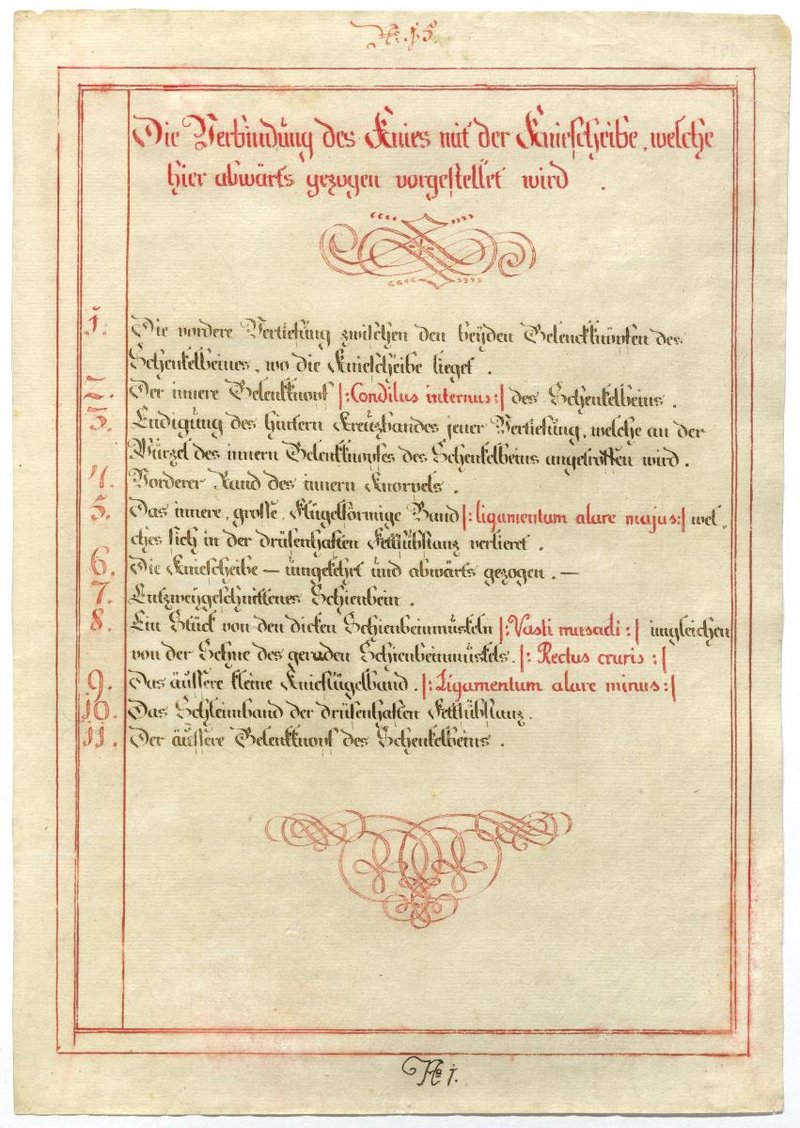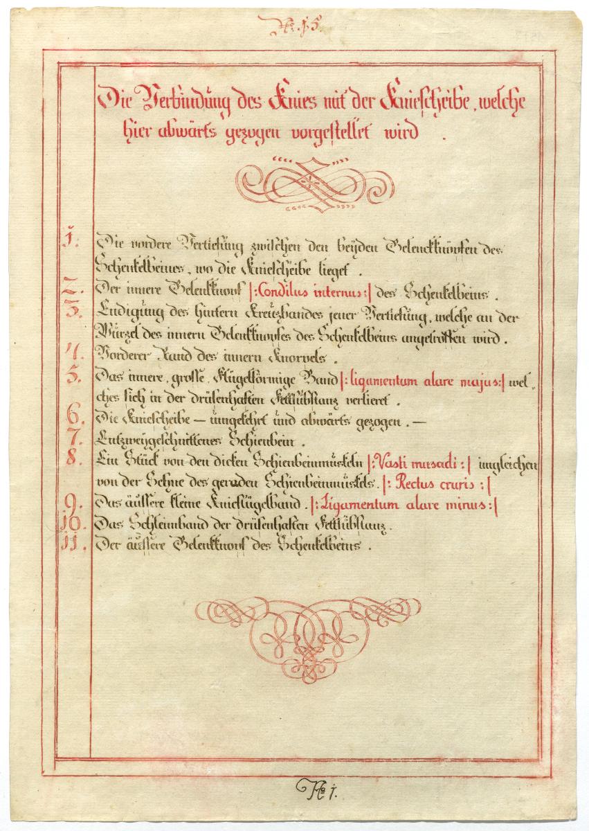 Der Text ist die ergänzende Beschreibung in deutscher Sprache zum anatomischen Wachsmodell des Knies.