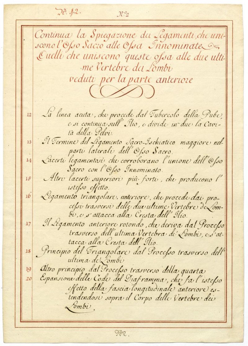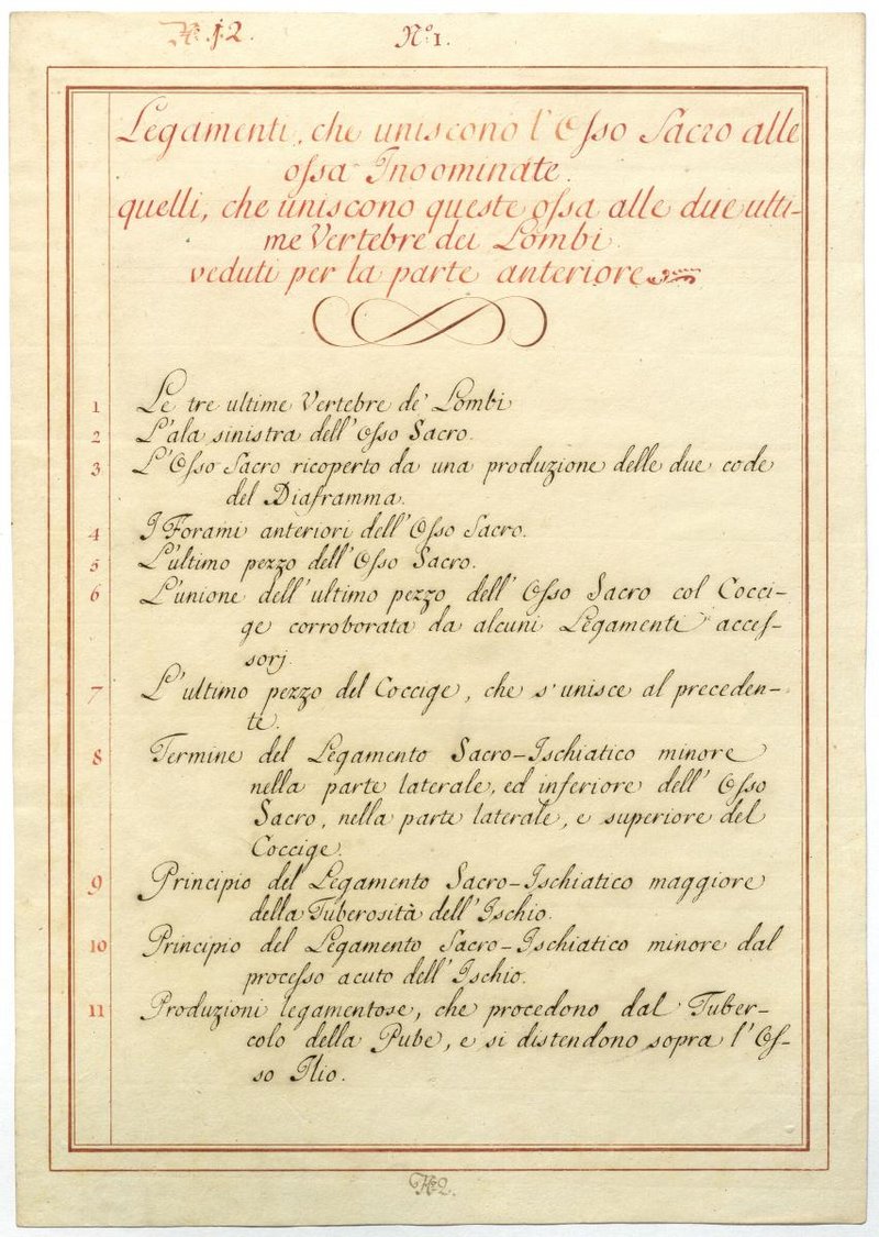 Der Text ist die ergänzende Beschreibung in italienischer Sprache zum anatomischen Wachsmodell der Hüfte.