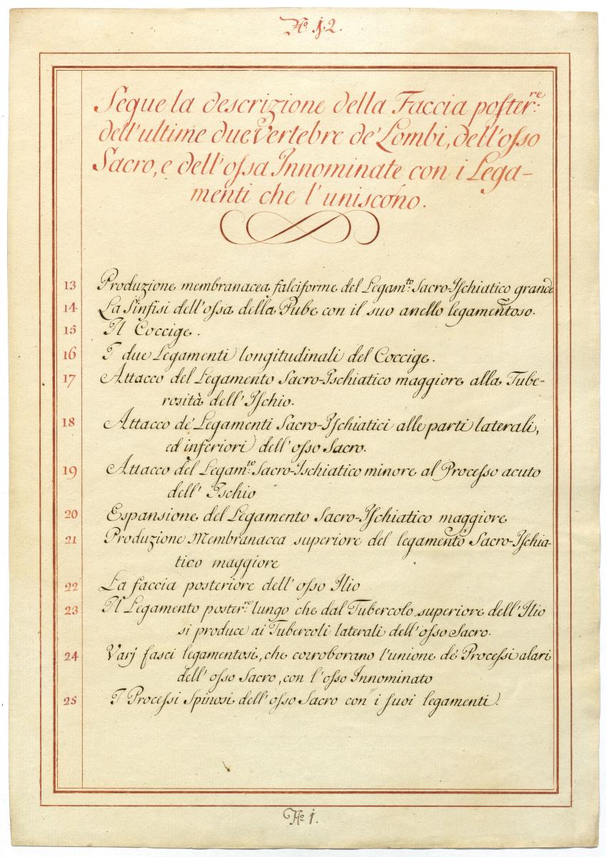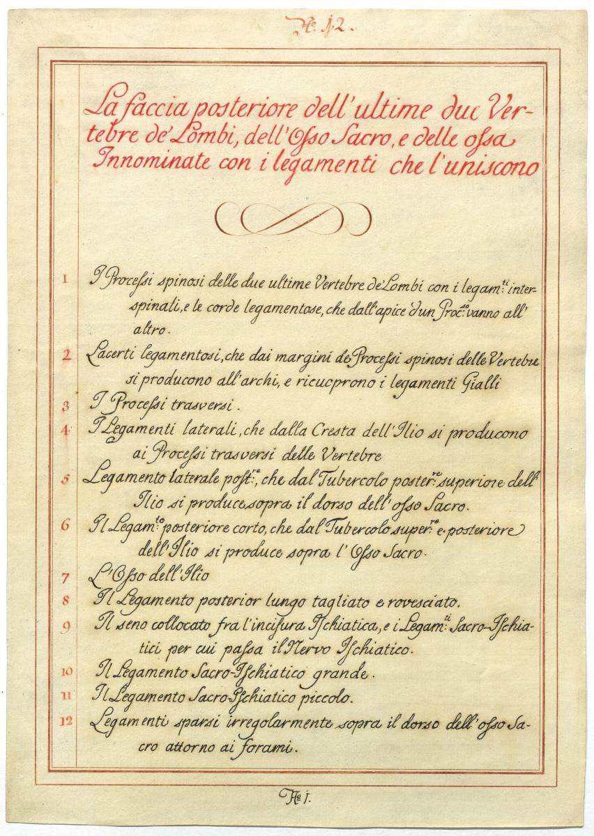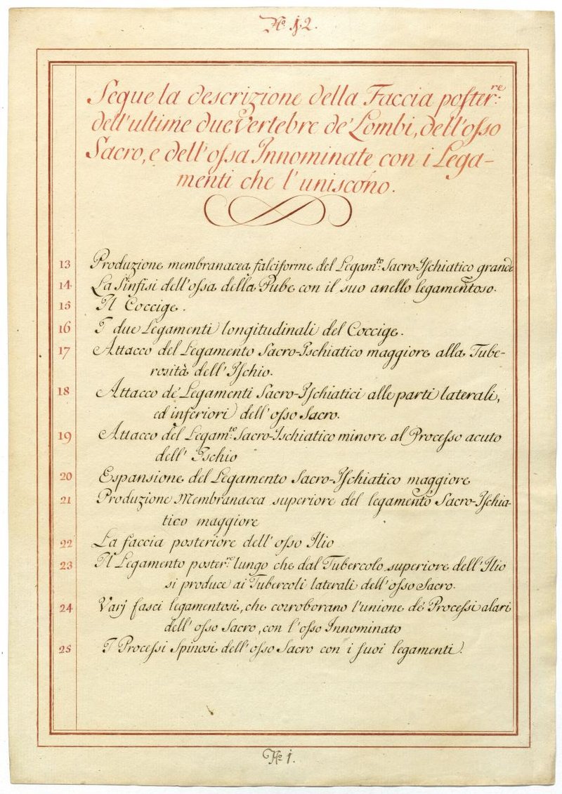 Der Text ist die ergänzende Beschreibung in italienischer Sprache zum anatomischen Wachsmodell der Hüfte.