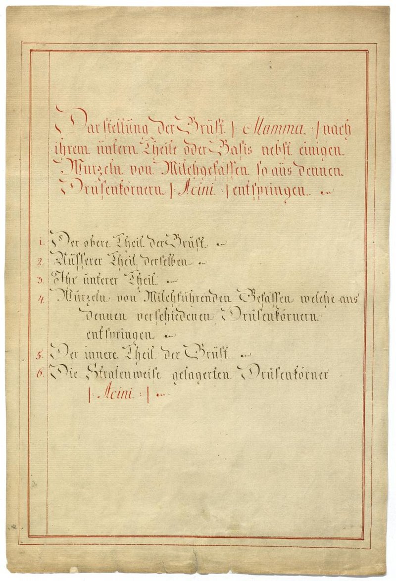 Der Text ist die ergänzende Beschreibung in deutscher Sprache zum anatomischen Wachsmodell der Brustdrüse.