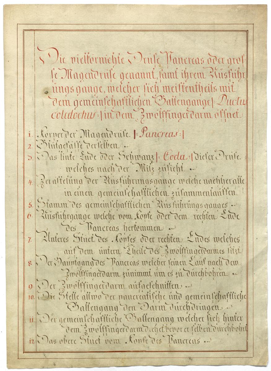 Der Text ist die ergänzende Beschreibung in deutscher Sprache zum anatomischen Wachsmodell der Milz und Bauchspeicheldrüse.
