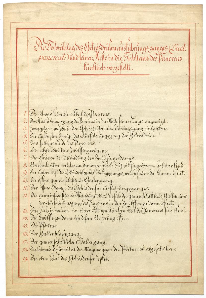 Der Text ist die ergänzende Beschreibung in deutscher Sprache zum anatomischen Wachsmodell der Einmündungen in den Zwölffingerdarm.