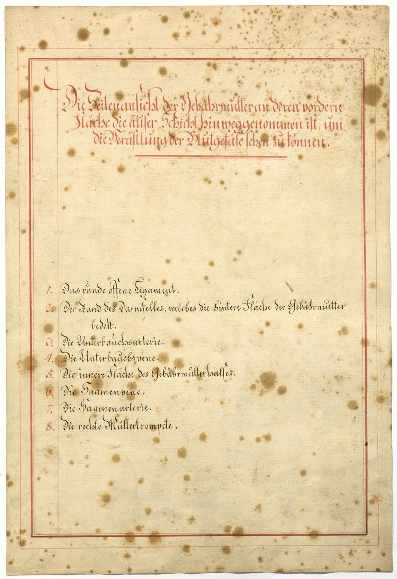 Der Text ist die ergänzende Beschreibung in deutscher Sprache zum anatomischen Wachsmodell einer Gebärmutter.