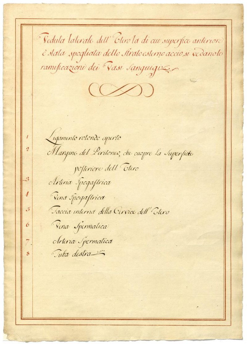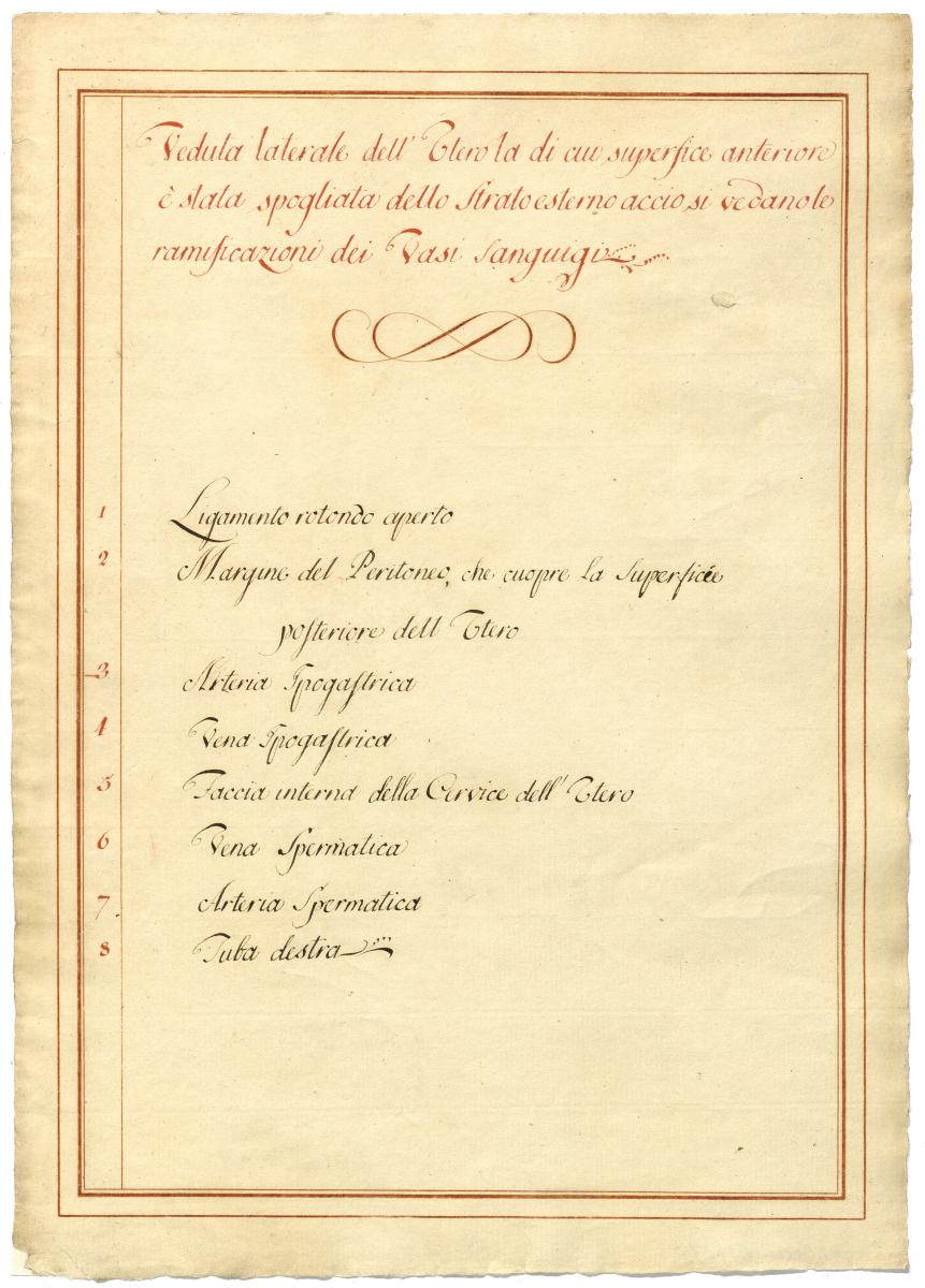 Der Text ist die ergänzende Beschreibung in italienischer Sprache zum anatomischen Wachsmodell einer Gebärmutter.