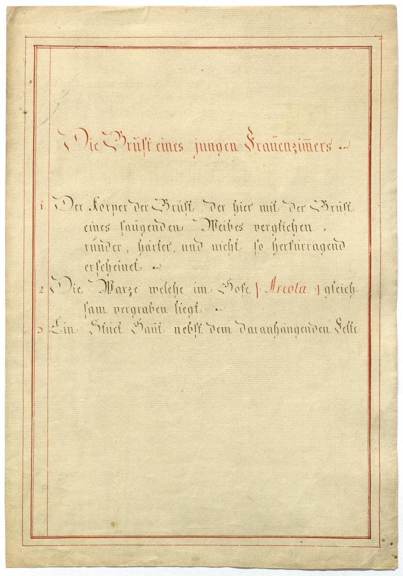 Der Text ist die ergänzende Beschreibung in deutscher Sprache zum anatomischen Wachsmodell der Brustdrüse.