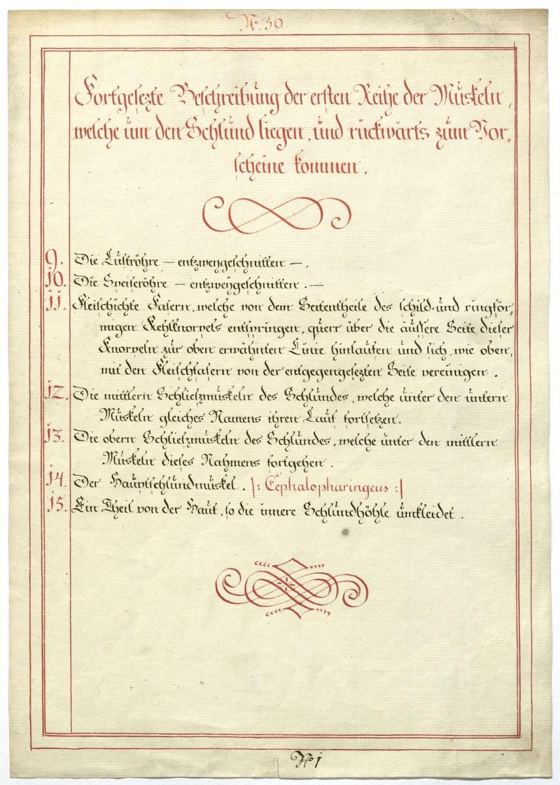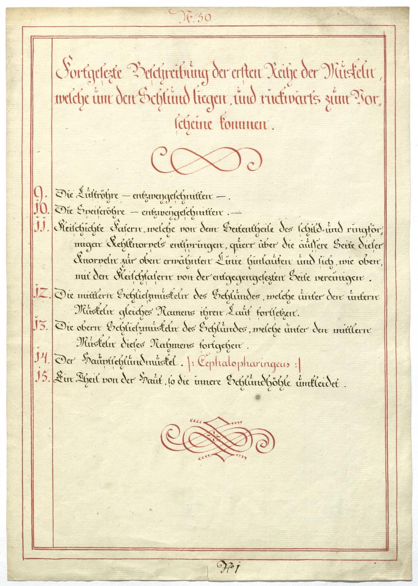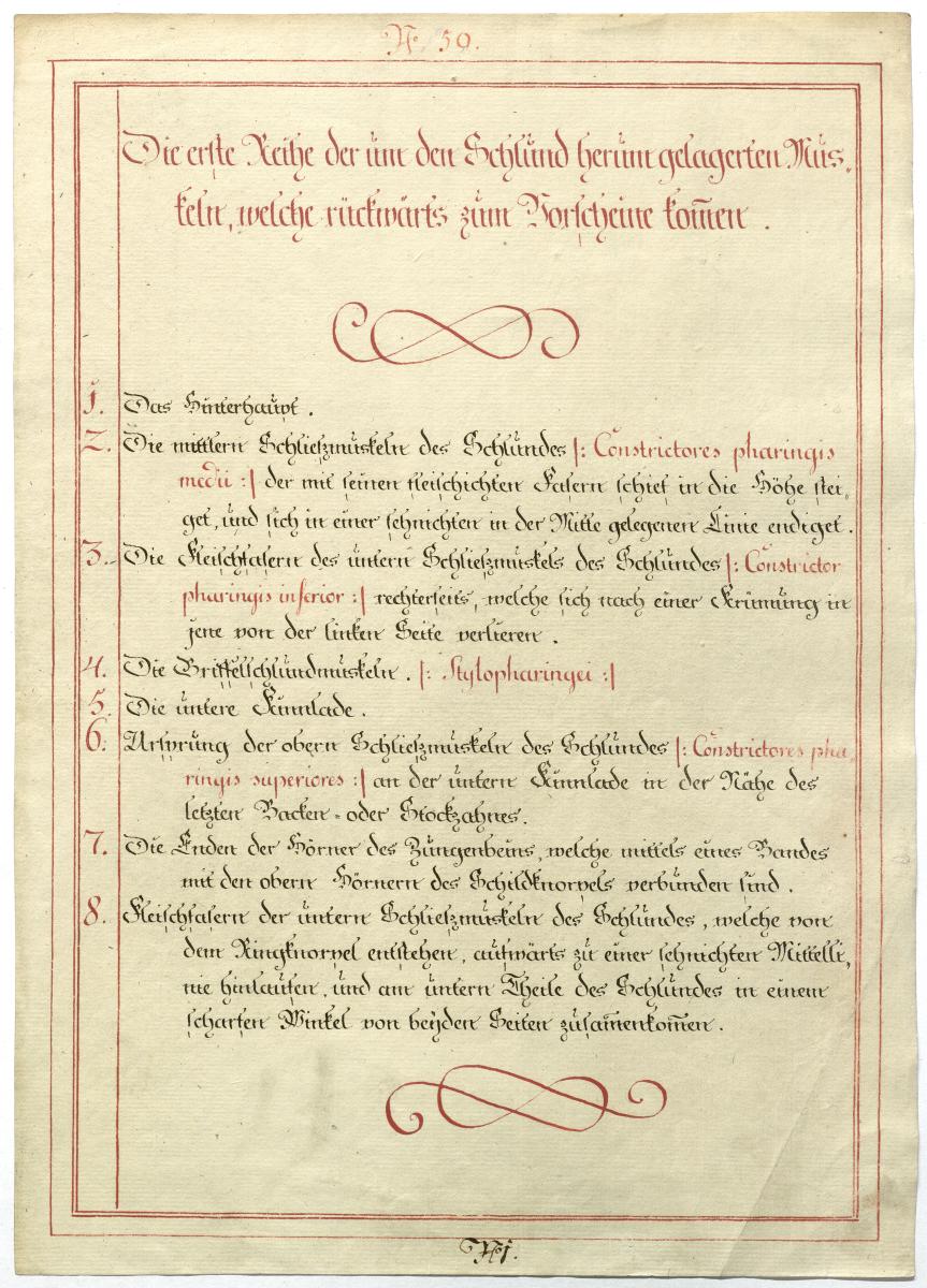 Der Text ist die ergänzende Beschreibung in deutscher Sprache zum anatomischen Wachsmodell der Rachenmuskulatur.