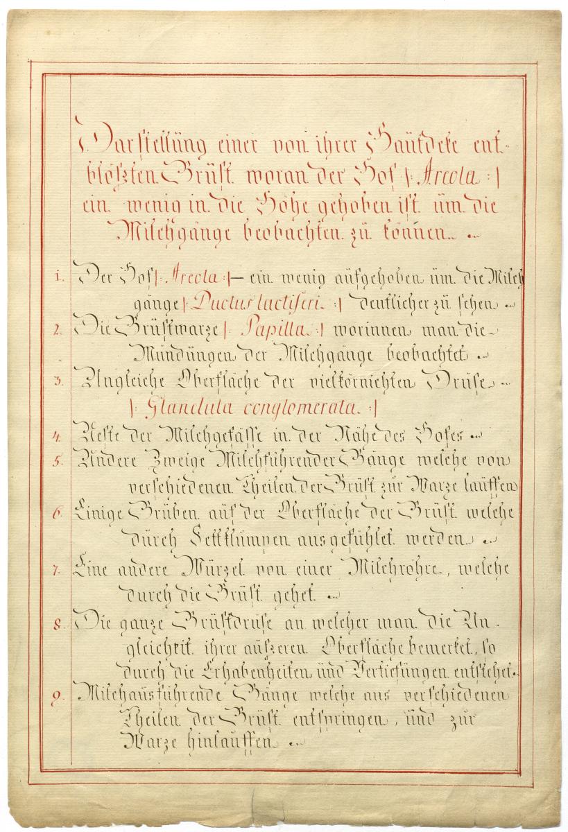 Der Text ist die ergänzende Beschreibung in deutscher Sprache zum anatomischen Wachsmodell der Brustdrüse.