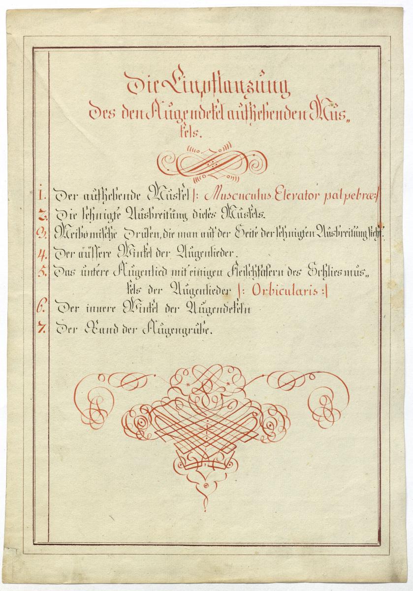 Der Text ist die ergänzende Beschreibung in deutscher Sprache zum anatomischen Wachsmodell der Hilfsmittel des Auges.
