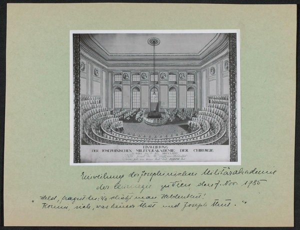 Abgedruckt in: Das Josephinum. 650 Jahre Wiener Medizingeschichte, Mythos und Wahrheit, Barbara Sternthal, Christiane Druml und Moritz Stipsicz (Hg.), Wien 2014, S. 46-47.