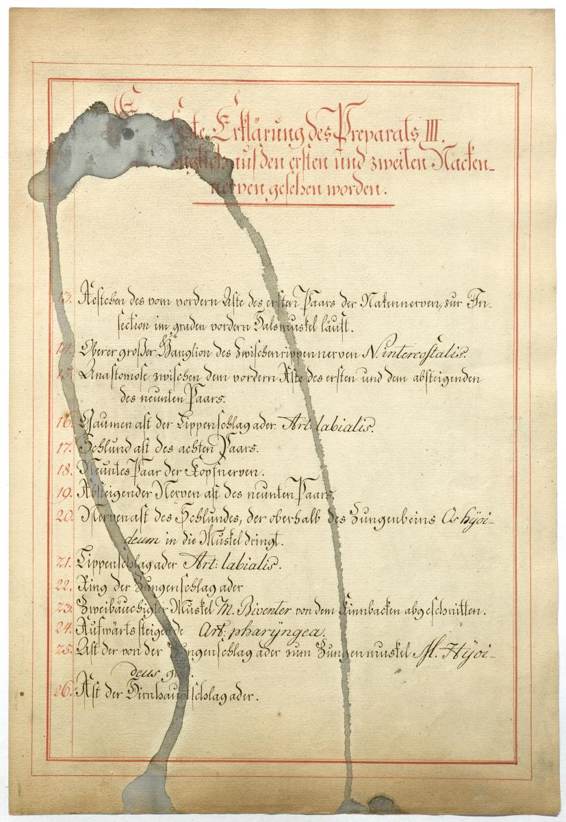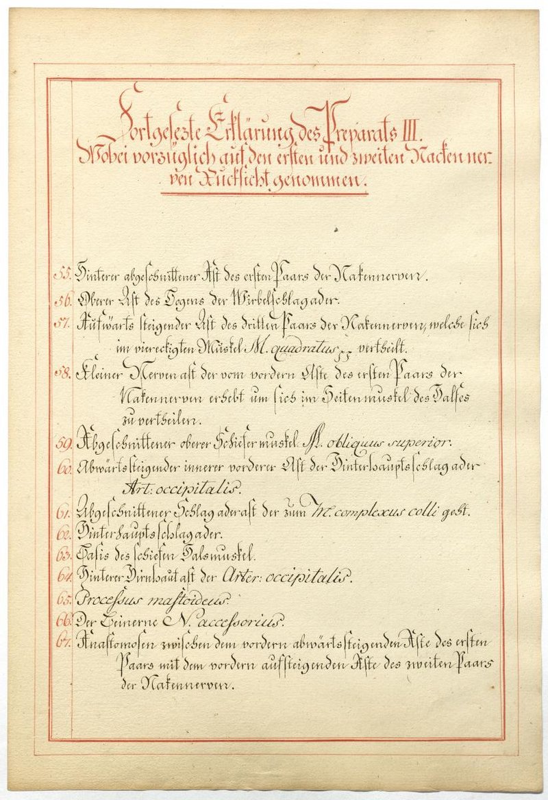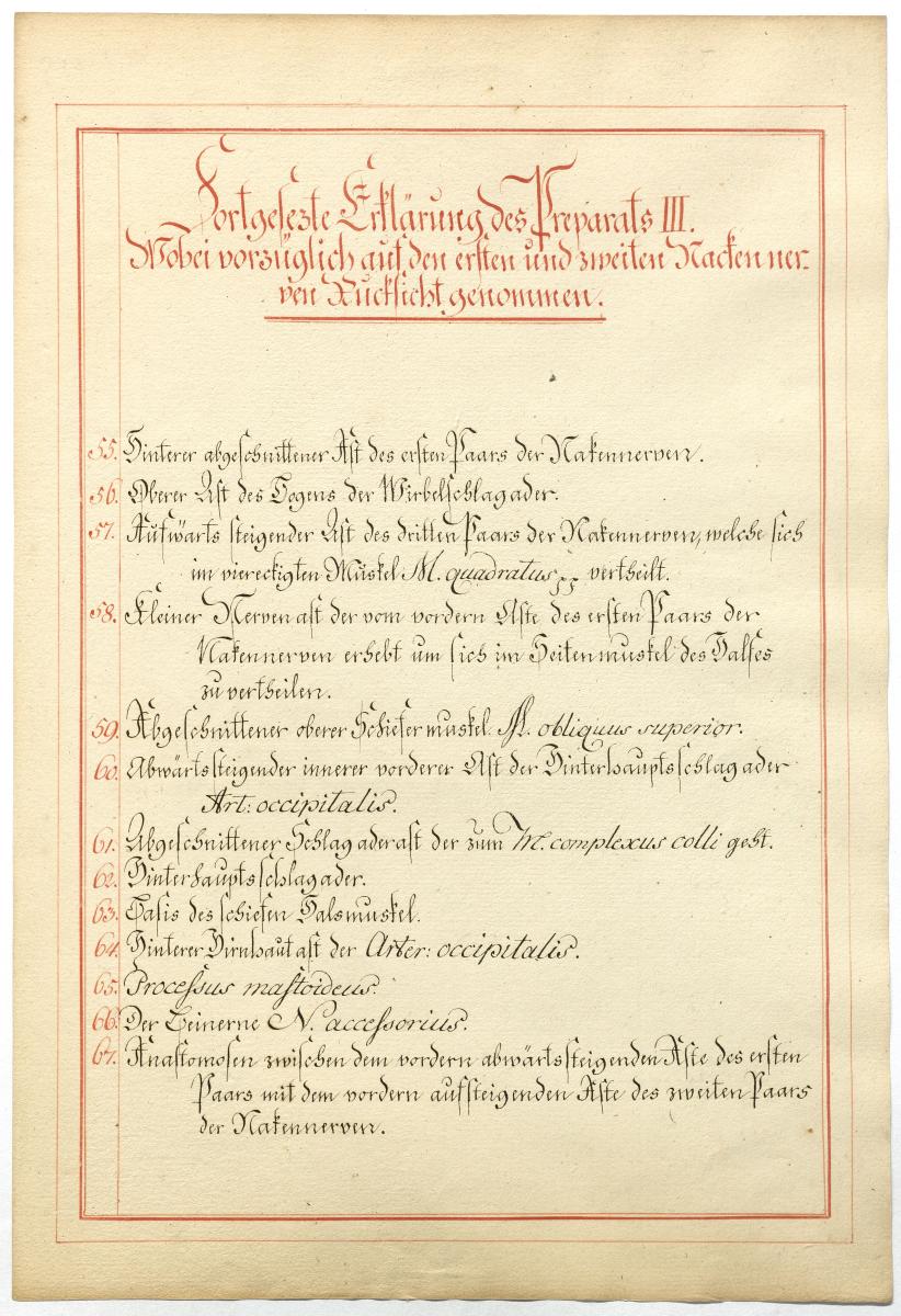 Der Text ist die ergänzende Beschreibung in deutscher Sprache zum anatomischen Wachsmodell des 1. und 2. Spinalnerv, Nervus vagus.