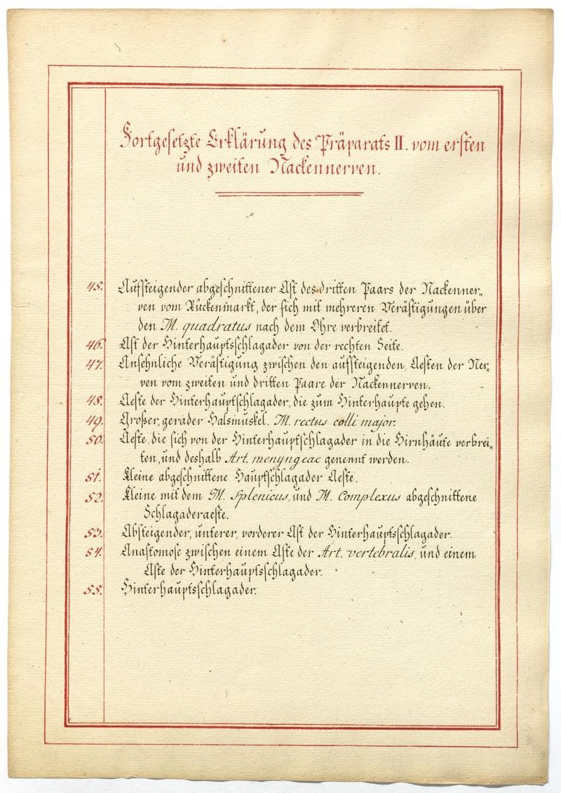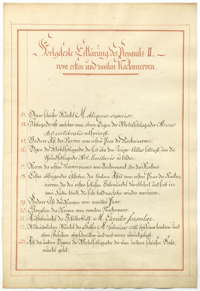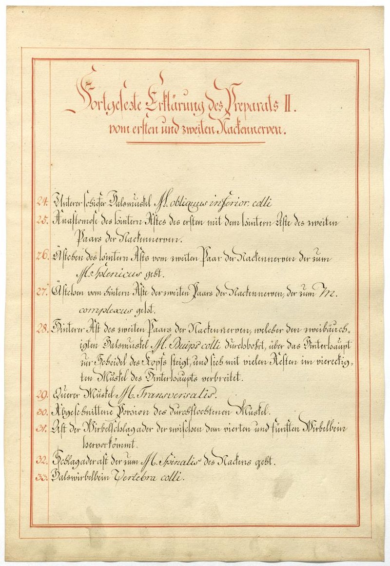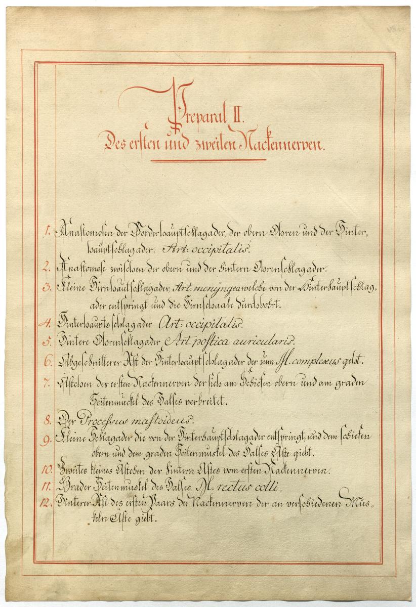 Der Text ist die ergänzende Beschreibung in deutscher Sprache zum anatomischen Wachsmodell des 1. und 2. Spinalnerv.