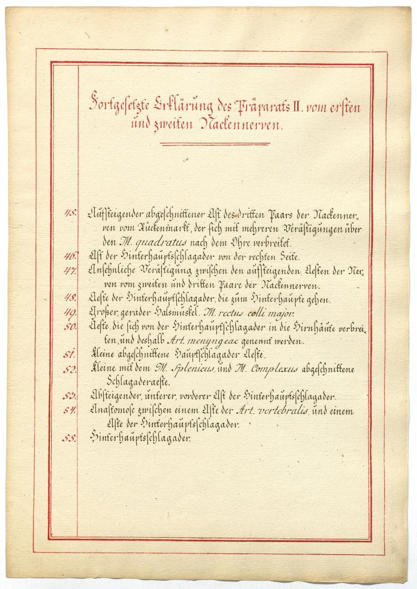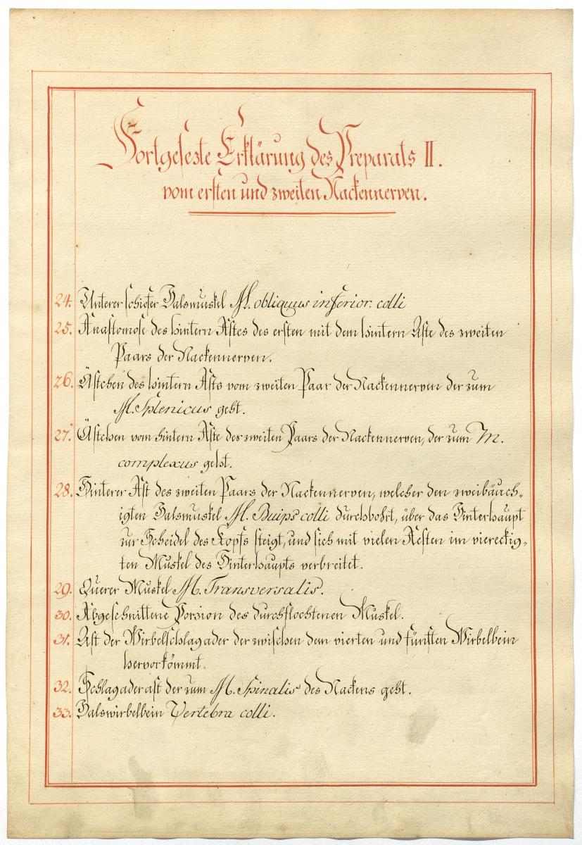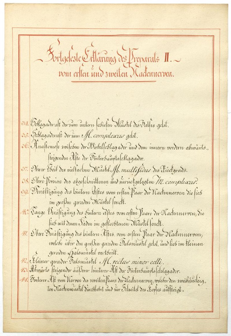Der Text ist die ergänzende Beschreibung in deutscher Sprache zum anatomischen Wachsmodell des 1. und 2. Spinalnerv.
