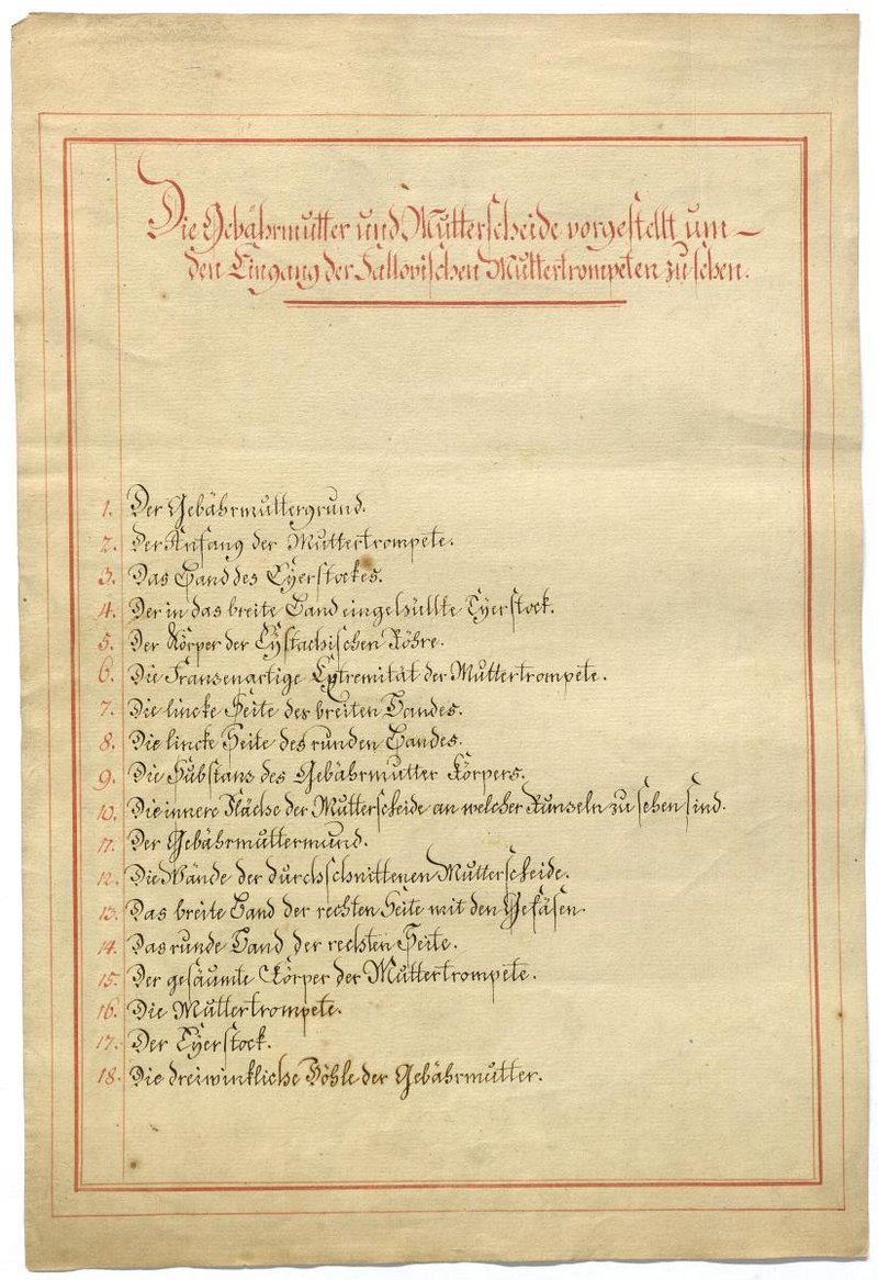 Der Text ist die ergänzende Beschreibung in deutscher Sprache zum anatomischen Wachsmodell des weiblichen Genitale.