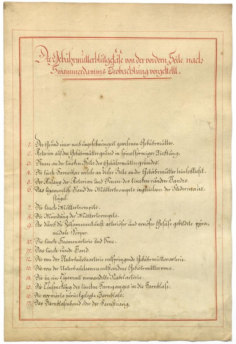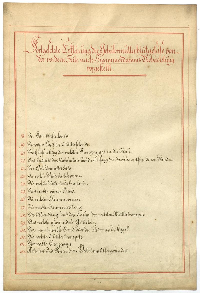 Der Text ist die ergänzende Beschreibung in deutscher Sprache zum anatomischen Wachsmodell des weiblichen Genitale.